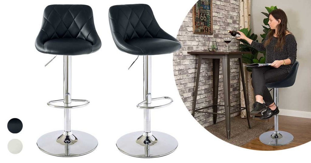 - 2 scaune de bar cu spătar (disponibile în alb sau negru)