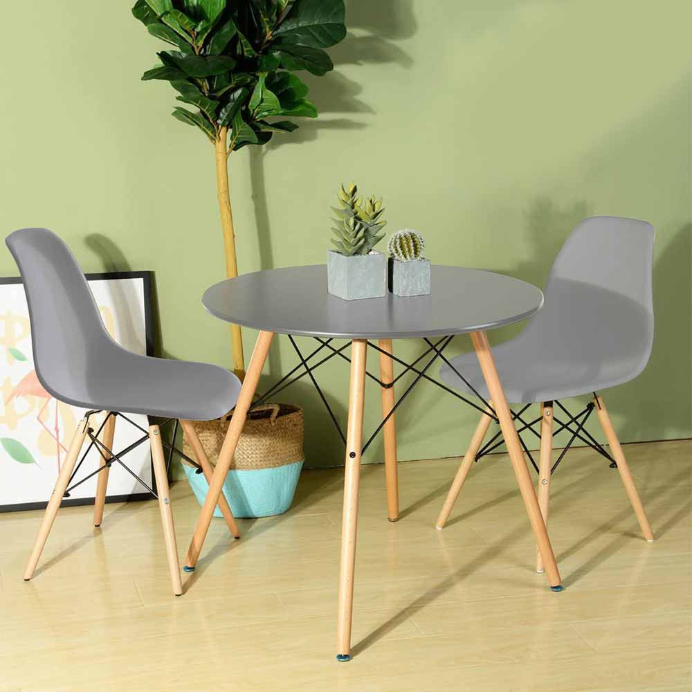 Masa cu un diametru de 60,5 cm este ideală pentru spațiile mai mici, unde optimizarea locului este esențială. Designul scaunelor permite așezarea practică în jurul mesei, menținând un aspect modern și aerisit. Setul este ușor de mutat și reconfigurat, fiind potrivit chiar și pentru un balcon sau o terasă.