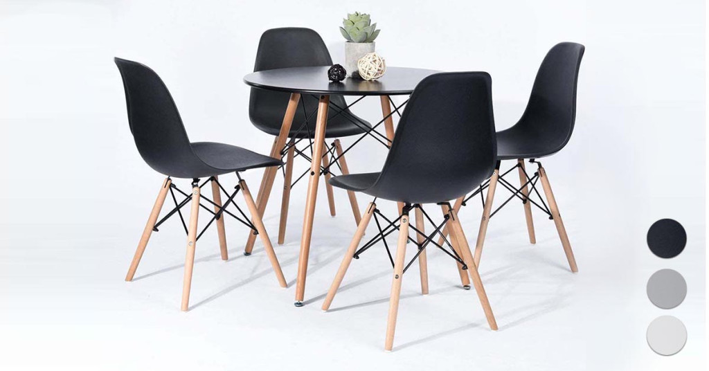 Atât scaunele, cât și masa au fost proiectate cu un accent deosebit pe estetică și funcționalitate. Șezutul scaunelor din plastic are o formă ergonomică, oferind un confort optim chiar și după utilizare îndelungată. Stabilitatea este asigurată de picioarele din lemn și întăriturile metalice, transformând acest set de dining într-o alegere durabilă și estetică.