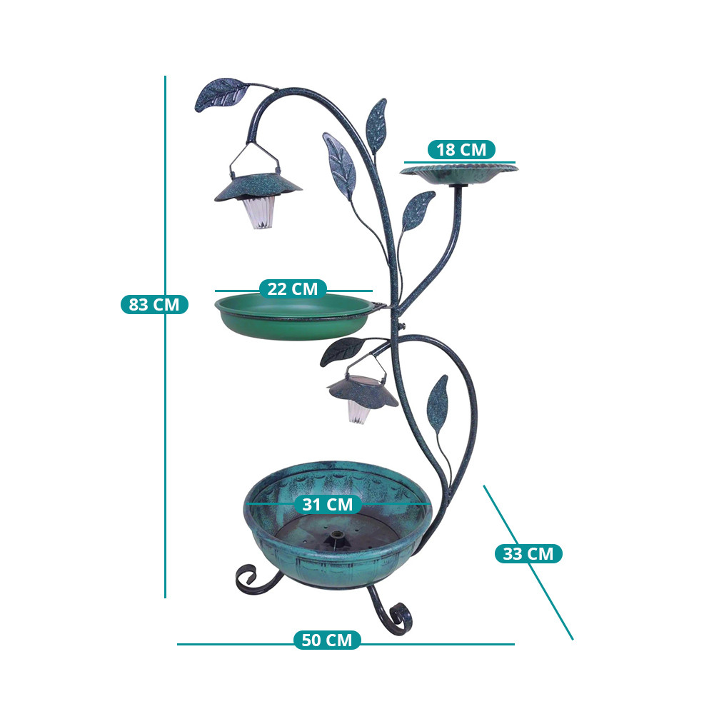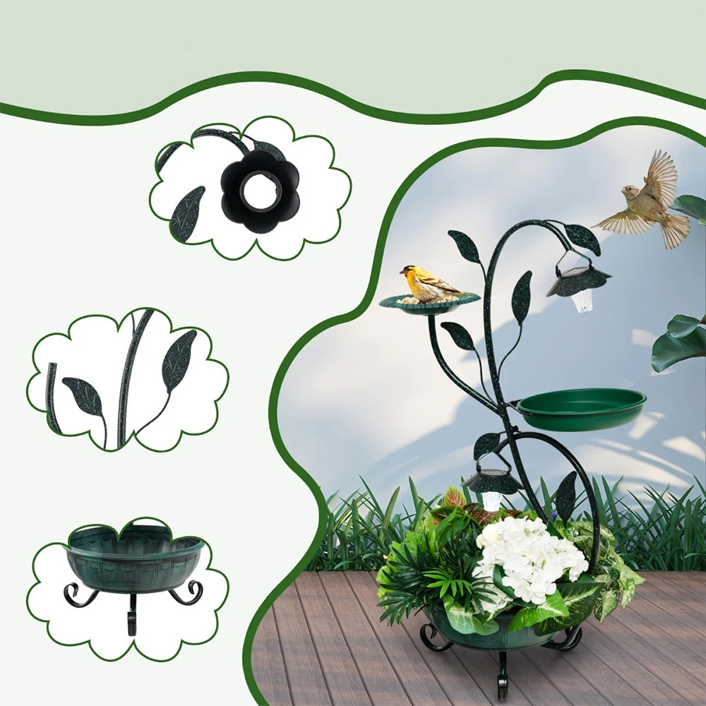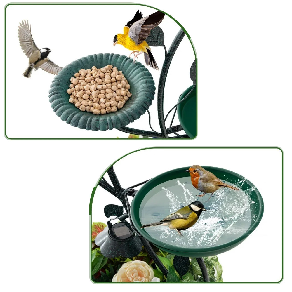 Pe tava de sus poți pune semințe, în bazinul cu apă pot sta simultan mai multe păsări, iar partea de jos se folosește ca suport pentru flori. Astfel, nu mai trebuie să cauți separat adăpătoare, hrănitoare sau ghivece, iar aspectul grădinii rămâne unitar.