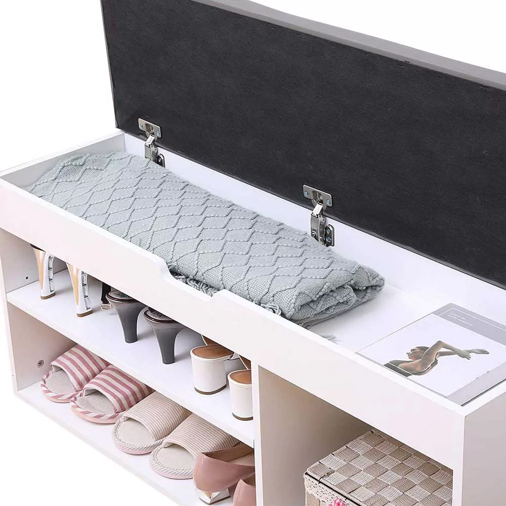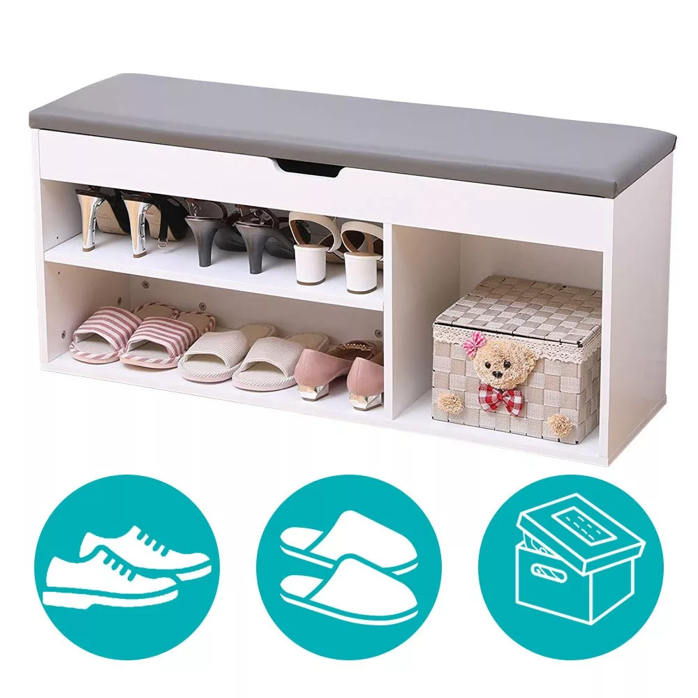 Păstrează-ți pantofii organizați și bucură-te de confort cu această bancă modernă pentru depozitare, care oferă o soluție practică pentru nevoile tale zilnice!