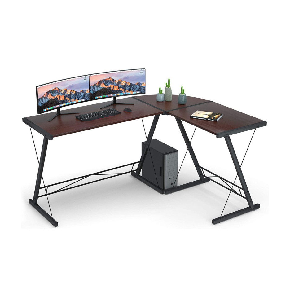 Designul în formă de L permite amenajarea mai multor zone funcționale. Pe o parte poți amplasa laptopul, un monitor mare sau chiar un setup cu două ecrane, în timp ce cealaltă parte îți oferă spațiu pentru documente, organizatoare și alte accesorii esențiale.