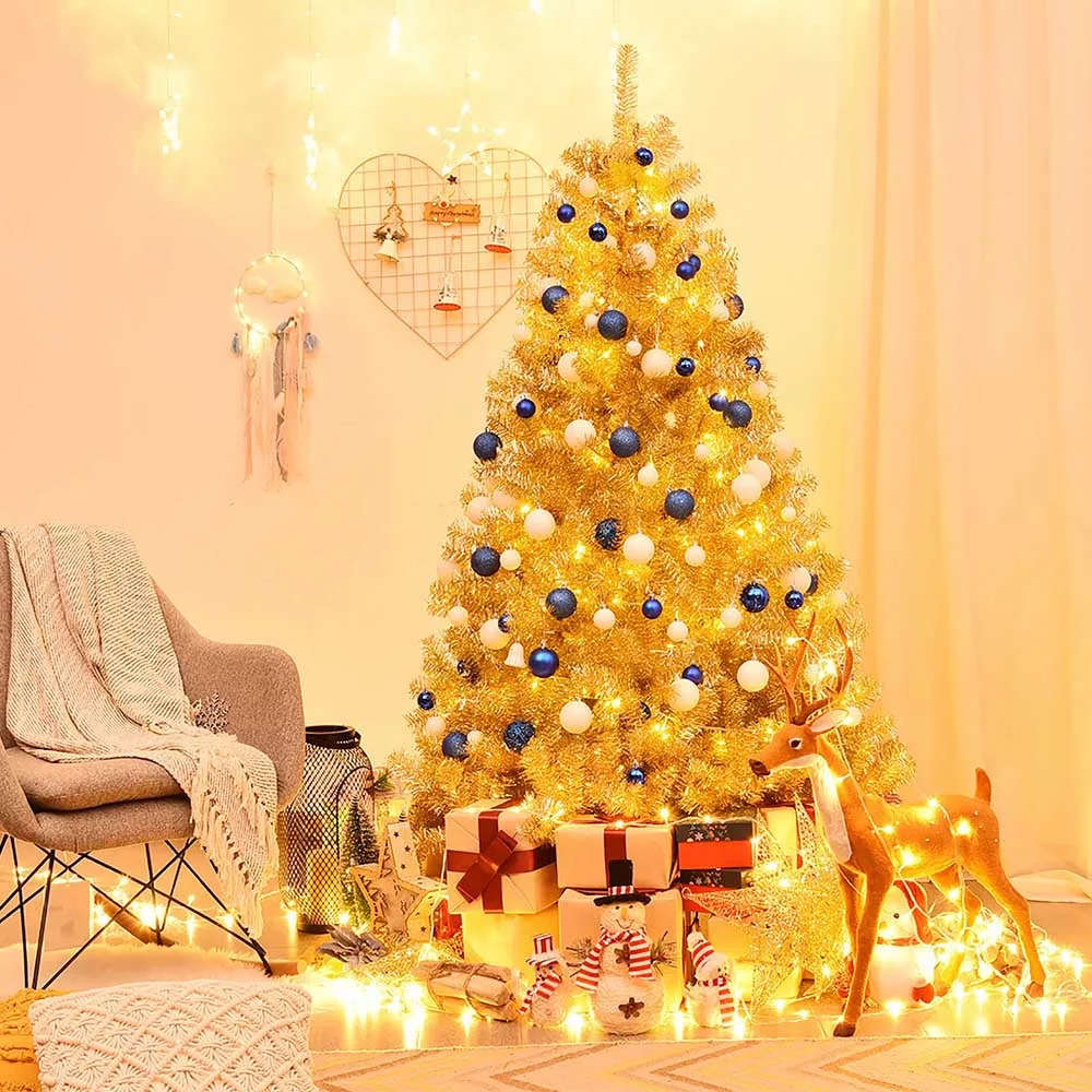 Îmbogățește-ți locuința cu un brad de Crăciun auriu, care aduce o strălucire elegantă și o atmosferă festivă specială! Este durabil, nu lasă ace și se asamblează ușor. Disponibil în mai multe dimensiuni, oferă o decorare luxoasă fără compromisuri, an după an.