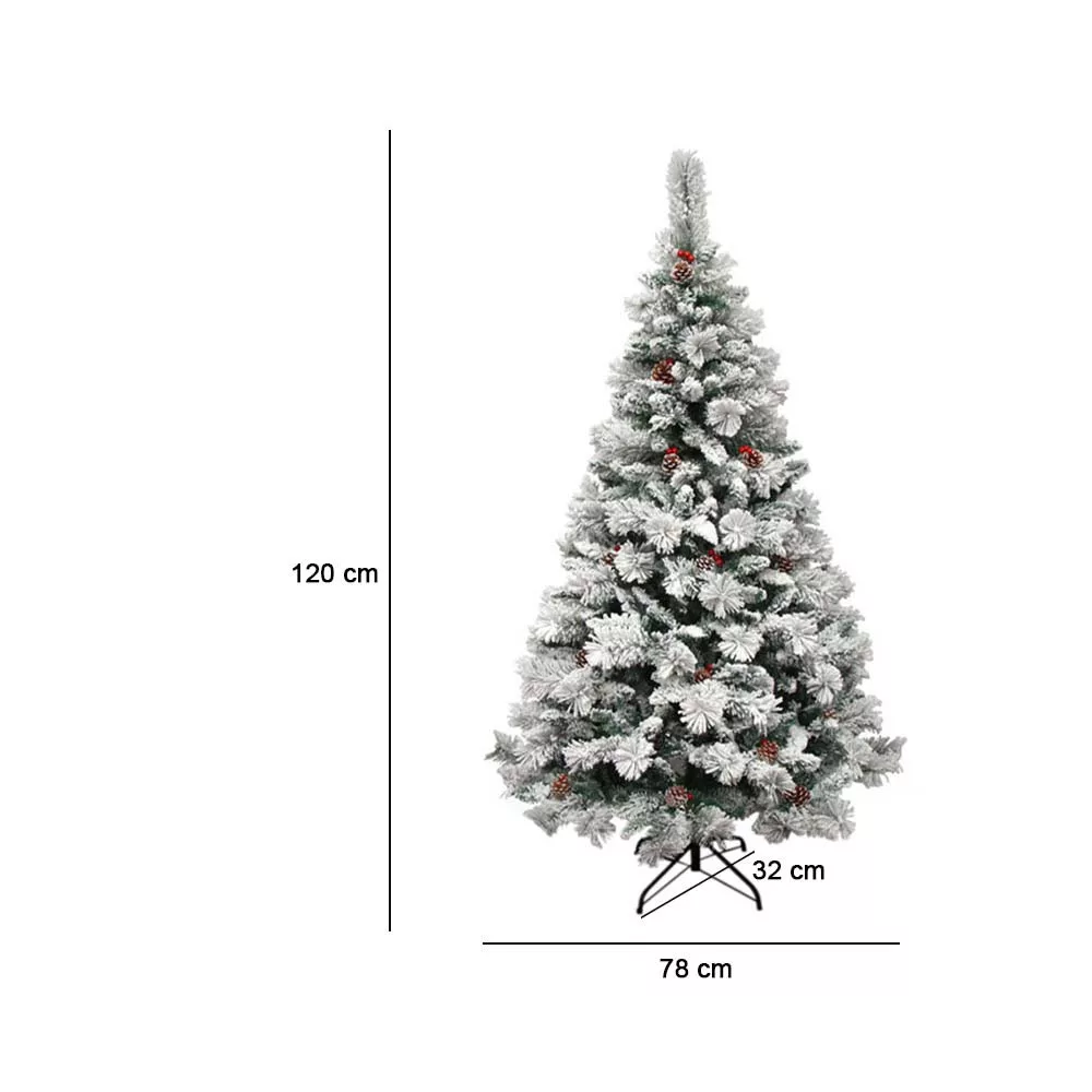 120 cm – 230 de ramuri, diametru la bază: 85 cm, greutate pachet: 3,8 kg, dimensiuni pachet: 85×23×22 cm, suport: 35×35 cm