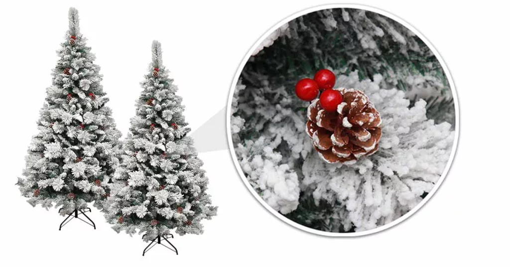 Crengile dese și stratul delicat de zăpadă artificială creează o atmosferă de poveste în casa ta. Conurile de brad și boabele de ilex adaugă un plus de naturalețe și eleganță.