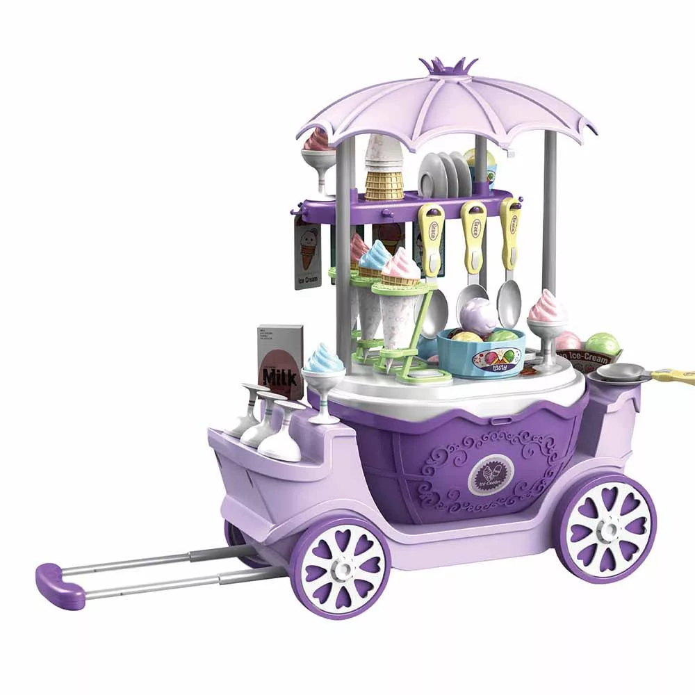 Căruțul de înghețată 4 în 1 este soluția ideală pentru joacă portabilă. Se pliază ușor, transformându-se într-o valiză, iar designul cu roți asigură o manevrare simplă pentru copii. Coșul detașabil al căruțului poate fi folosit separat, oferind spațiu suficient pentru toate accesoriile necesare jocului.