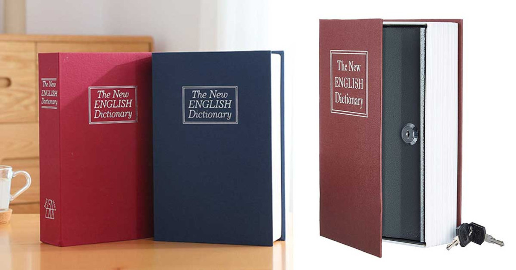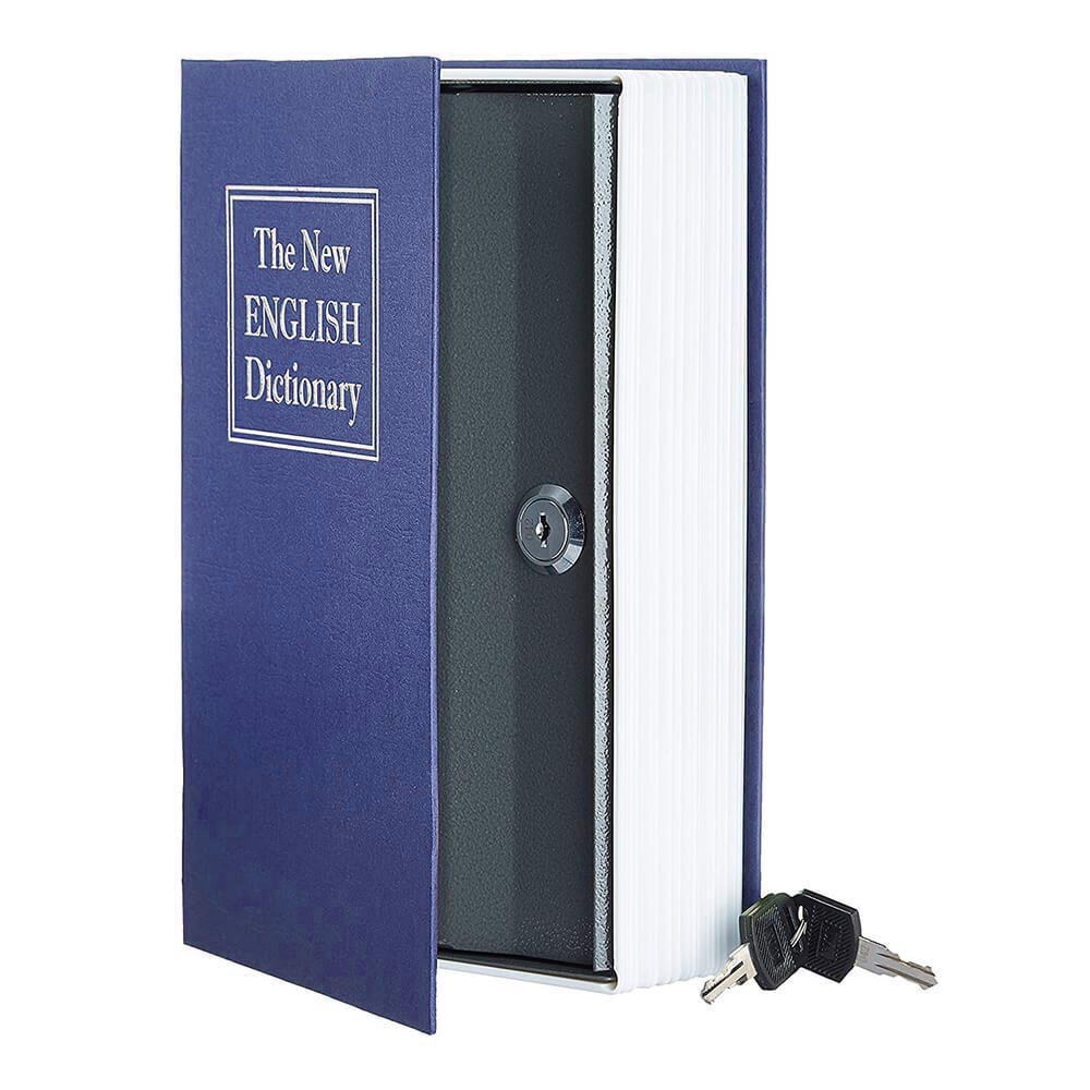 Datorită aspectului realist de dicționar, acest seif se integrează perfect în orice bibliotecă. La prima vedere pare o carte obișnuită, fiind astfel un spațiu de depozitare ascuns ideal pentru obiectele de valoare mai mici.