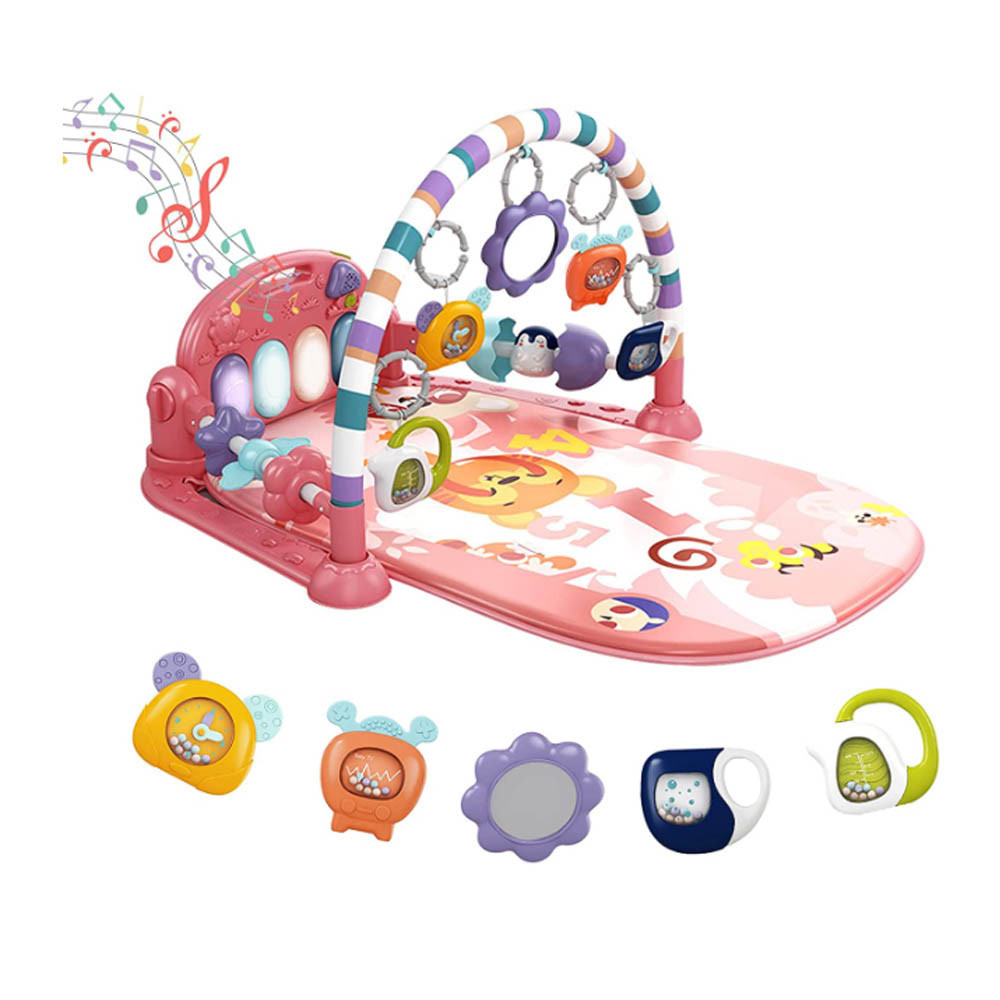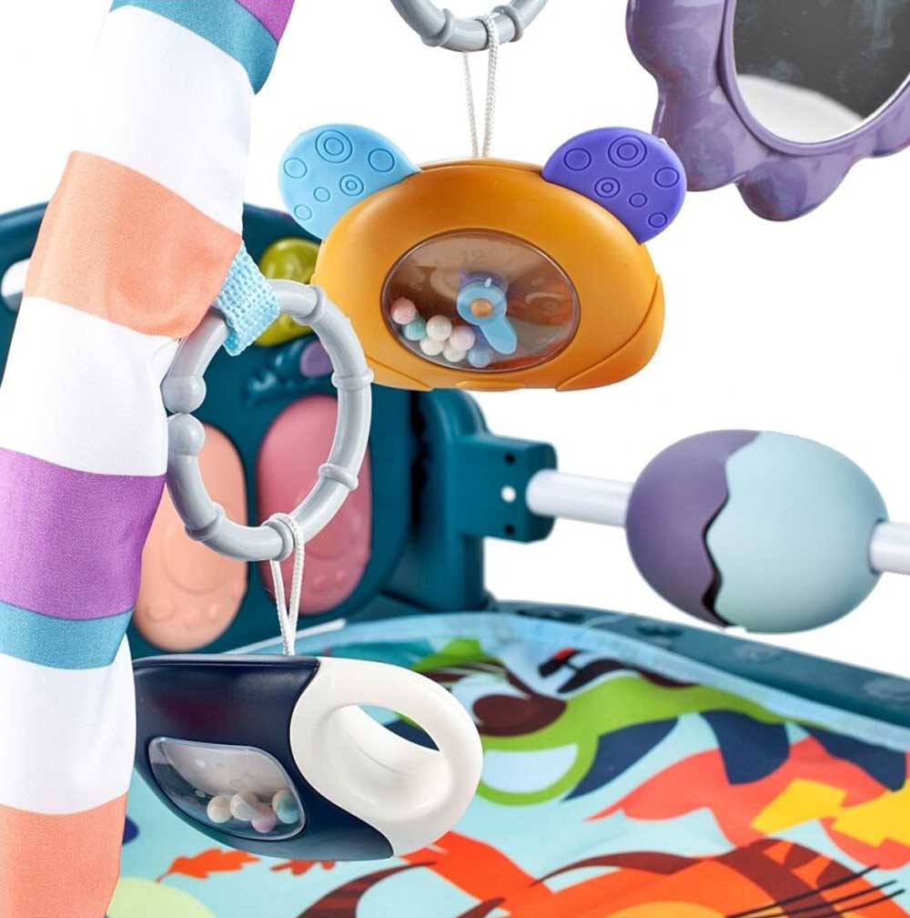 Acest covoraș de joacă cu pian este alegerea perfectă pentru bebeluși, oferind o combinație de divertisment și stimulare a dezvoltării. Baza stabilă permite utilizarea în siguranță, în timp ce jucăriile viu colorate, zornăitoarele și unitatea muzicală contribuie la dezvoltarea abilităților motorii, a dexterității și a simțului muzical. Jucăriile suspendate de arcada covorașului sunt concepute pentru a atrage atenția bebelușului și pentru a sprijini dezvoltarea coordonării și percepției senzoriale.