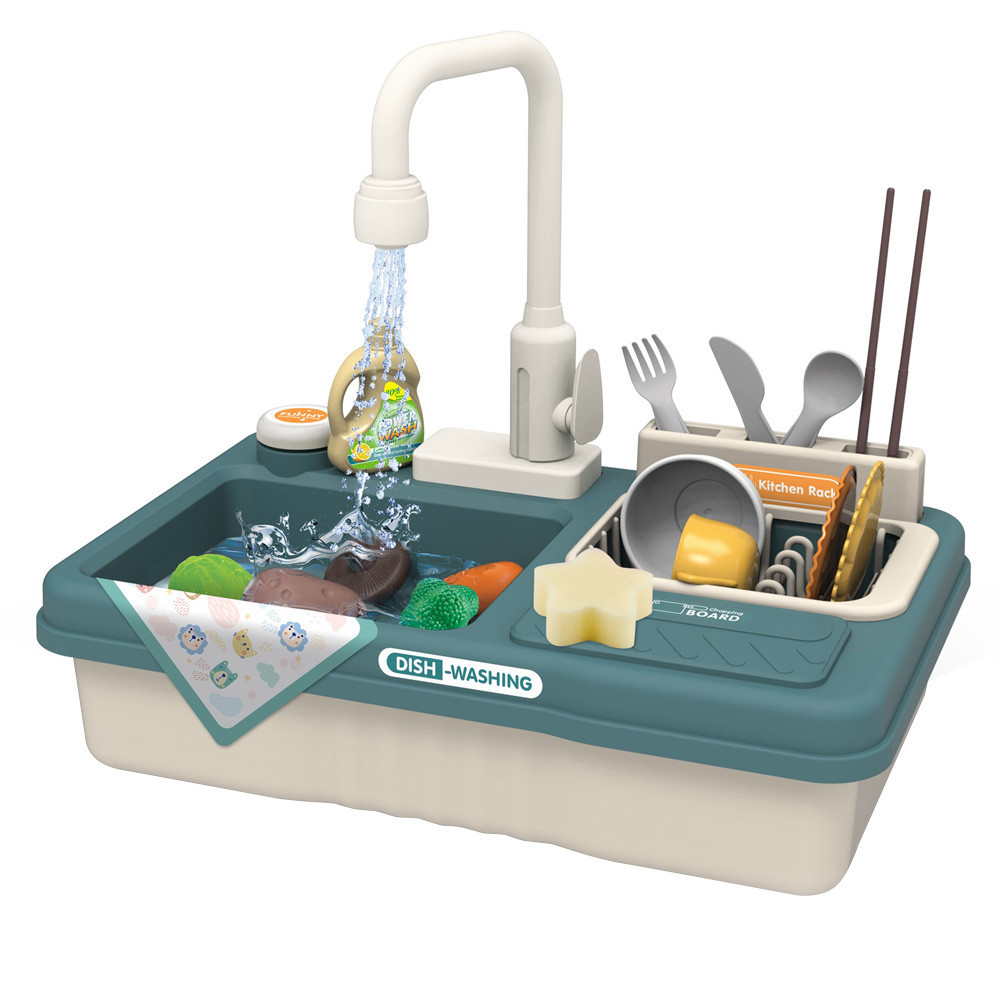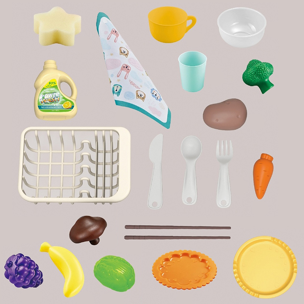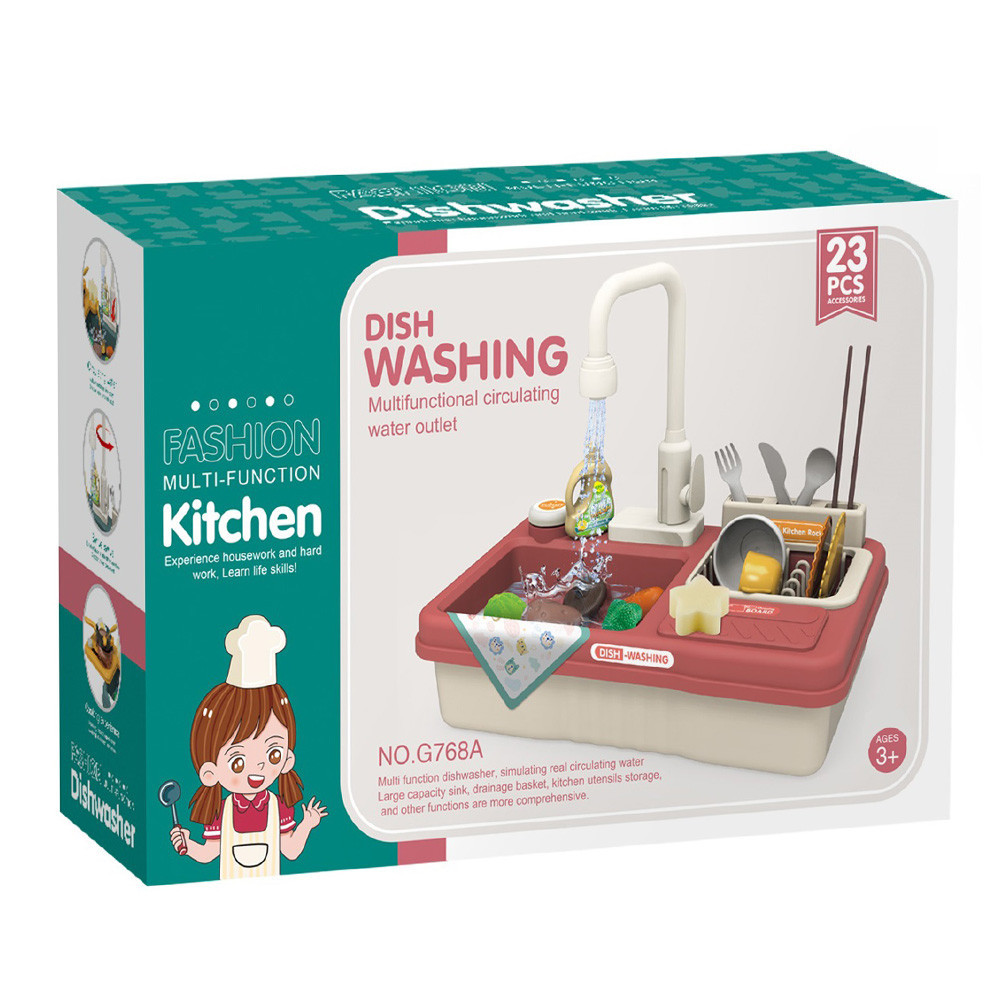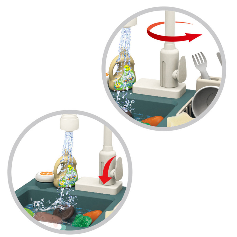Dexteritatea manuala se dezvolta in timpul jocului, iar creativitatea poate lua zborul datorita accesoriilor realiste. Si cu ajutorul jetului de apa care vine de la chiuveta, ei pot invata cu usurinta cum sa spele temeinic fructele si sa faca vasele impecabile.