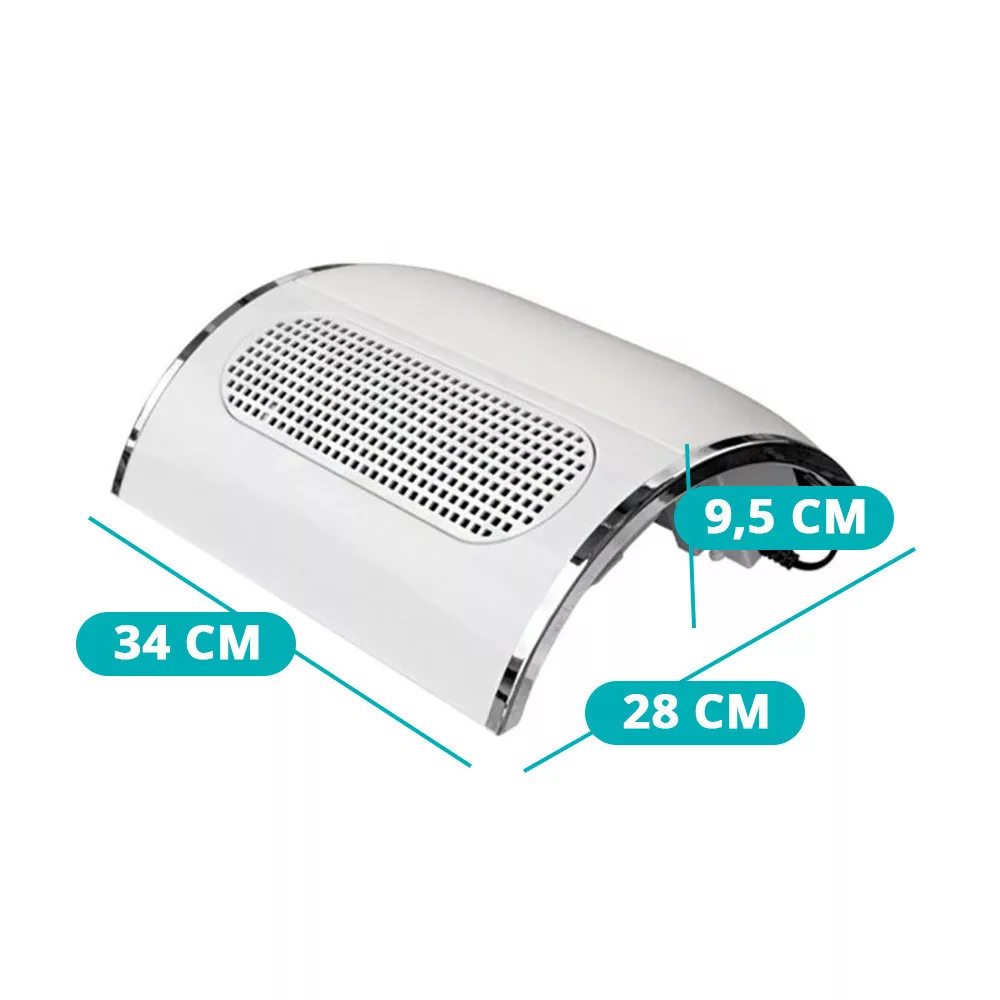Dispozitivul este echipat cu 3 ventilatoare care asigură o absorbție rapidă și eficientă a unei cantități mari de praf. Sistemul de aspirare este deosebit de puternic, captând și cele mai fine particule de praf în recipientul special. Acest lucru este deosebit de util atunci când se generează o cantitate mare de praf de unghii.