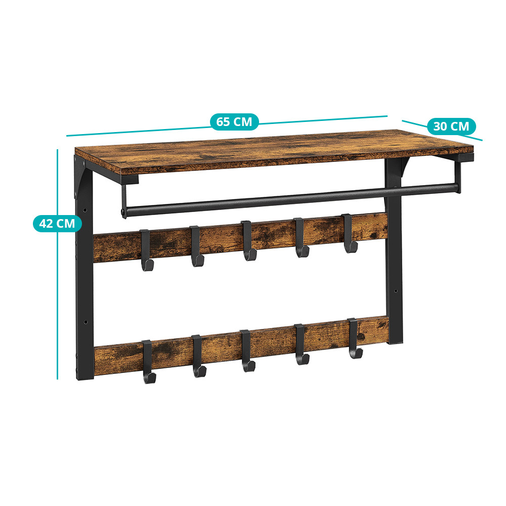 • Cuier de perete 3 în 1: poliță, cârlige și bară pentru haine