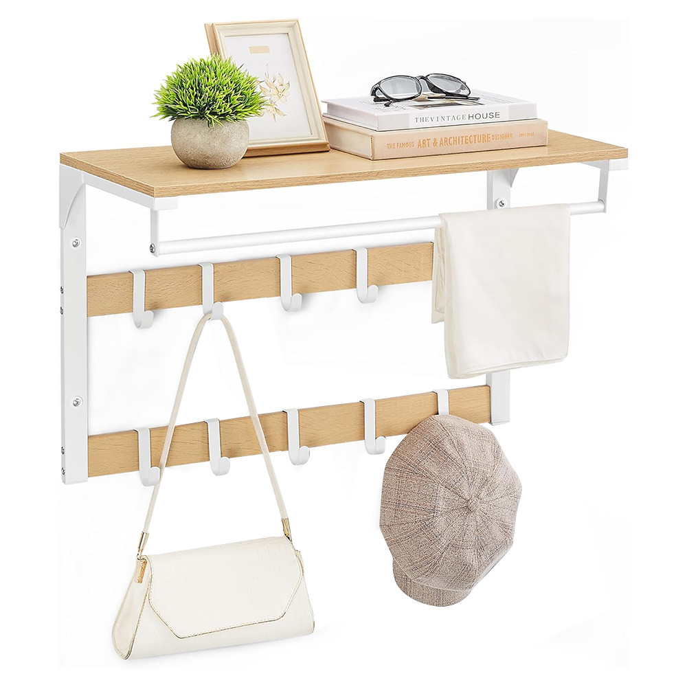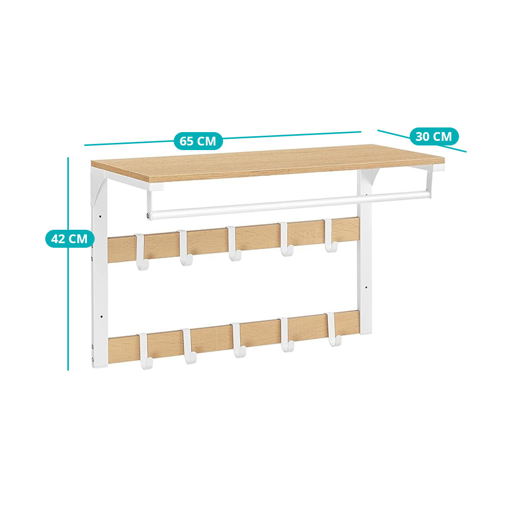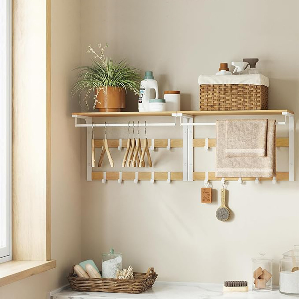 - Cuier de perete 3 în 1: poliță, cârlige și bară pentru haine