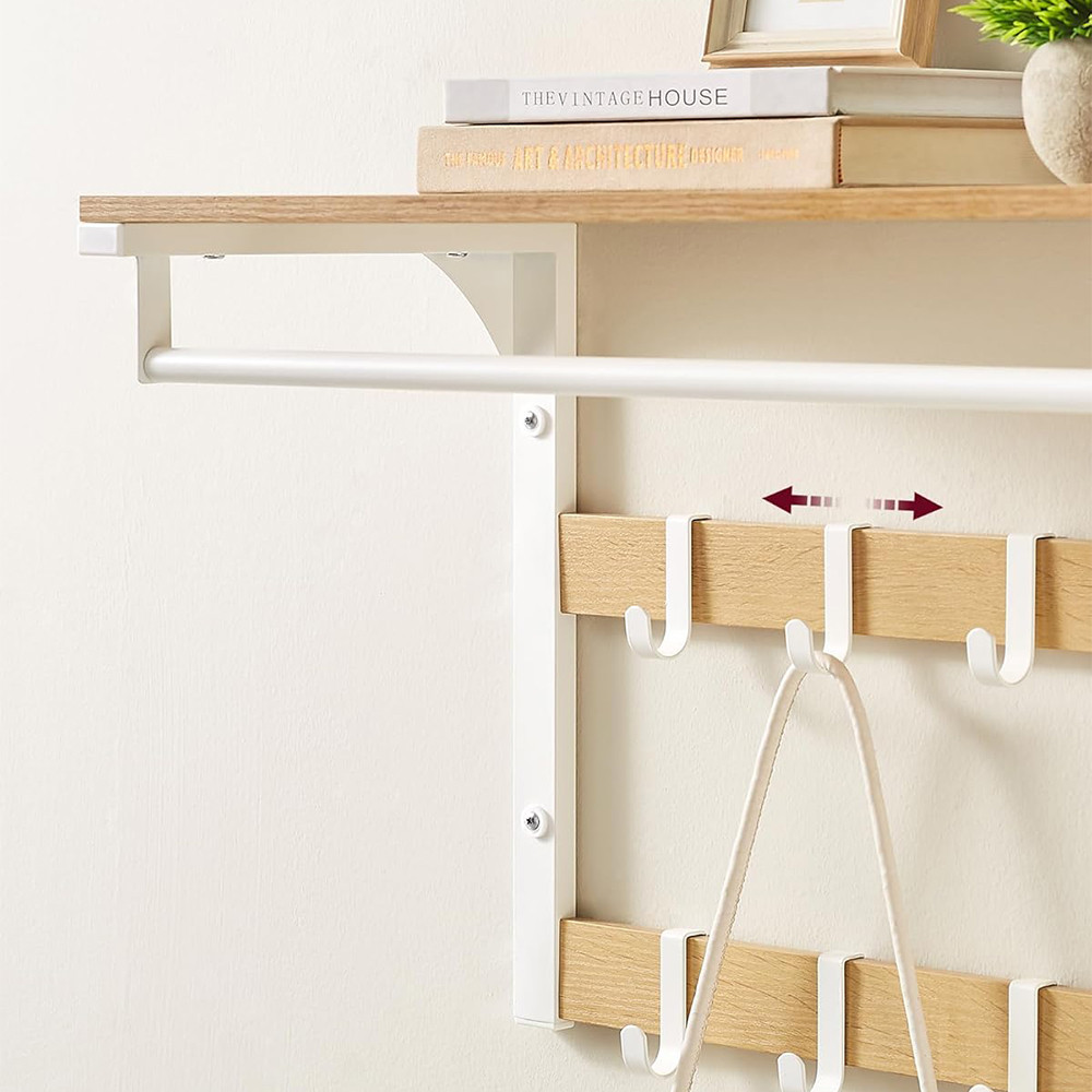 Designul multifuncțional combină polița, cârligele și bara pentru haine, astfel încât obiectele utilizate frecvent să fie mereu ușor accesibile.