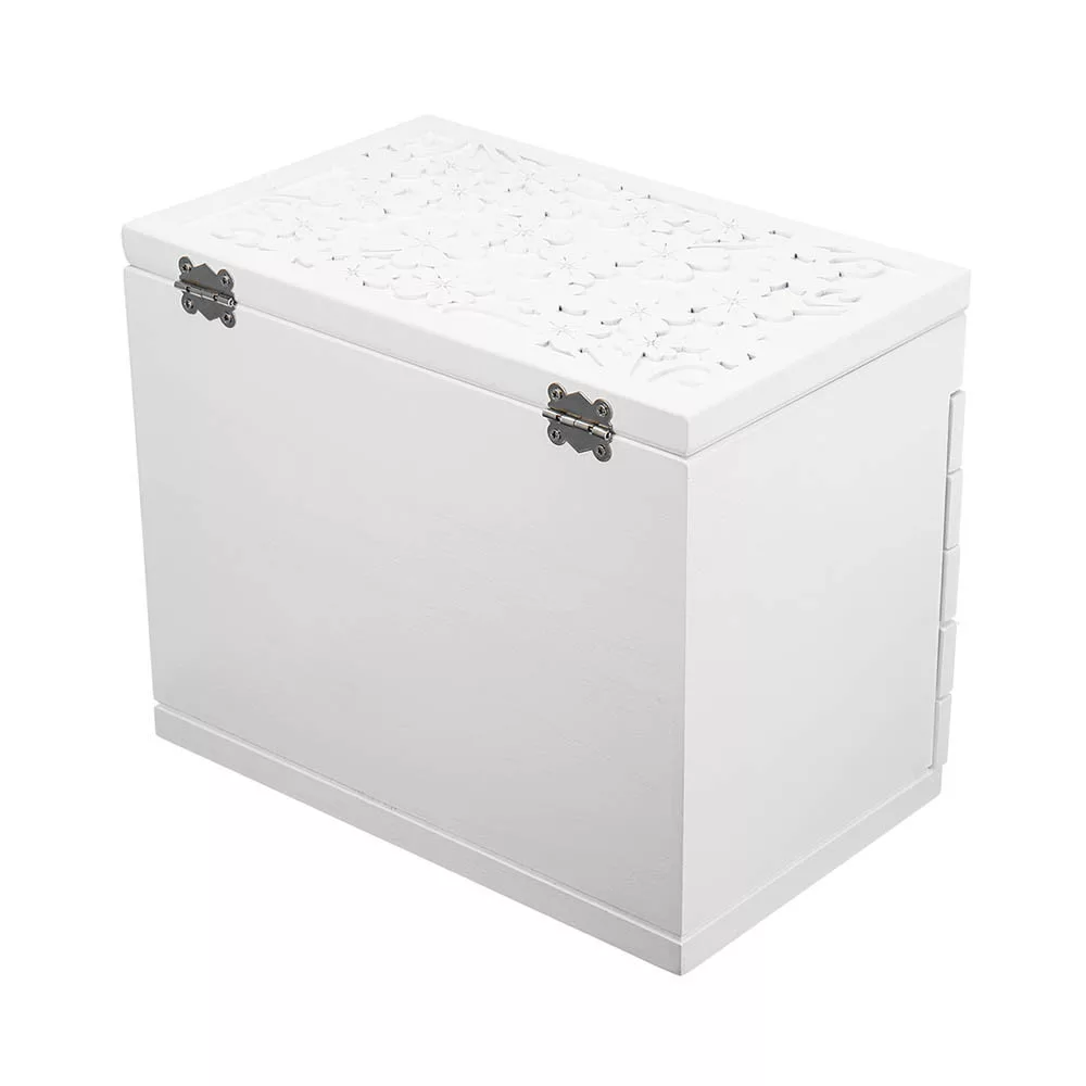 Datorită culorii albe și designului clasic, acest organizator se integrează ușor în orice decor. Așezat pe o masă de toaletă, o comodă sau un raft, nu doar că îți păstrează bijuteriile organizate, ci funcționează și ca un element decorativ elegant.