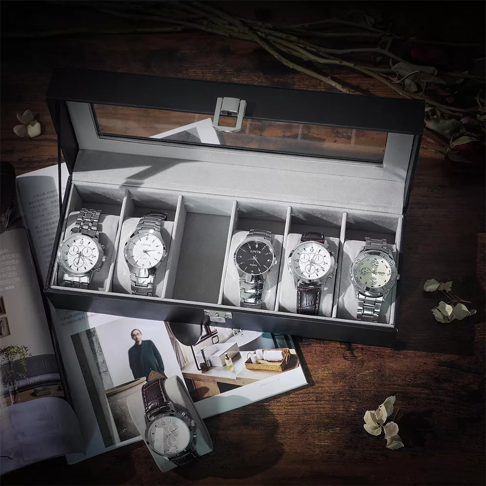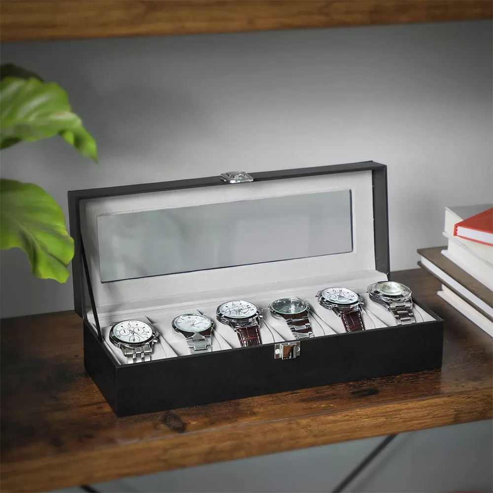 Datorită capacului transparent din sticlă, ceasurile tale sunt întotdeauna vizibile, fiind protejate de praf. Poți selecta cu ușurință ceasul pe care vrei să-l porți zilnic, în timp ce ceasurile tale sunt aranjate elegant.