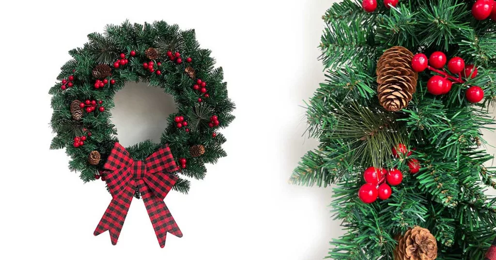 Creati o atmosfera de Craciun in preajma sarbatorilor deja la intrare! Decoratiunea de Craciun pentru usa cu diametru de 60 cm pentru spiritul de sarbatoare. Faceti-va timp pentru a va decora casa in interior si in exterior, deoarece membrii familiei si prietenii se pot bucura de spiritul sarbatorii inca din clipa sosirii. Datorita bazei sale din ramuri de brad artificial, poate oferi locuintei un aspect perfect de sarbatoare in fiecare an. Are 8 moduri diferite de iluminat, deoarece 50 de LED-uri asigura luminile festive adecvate.