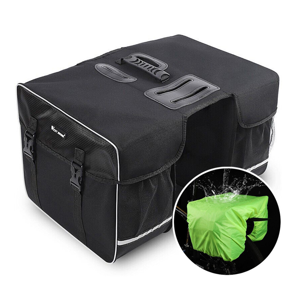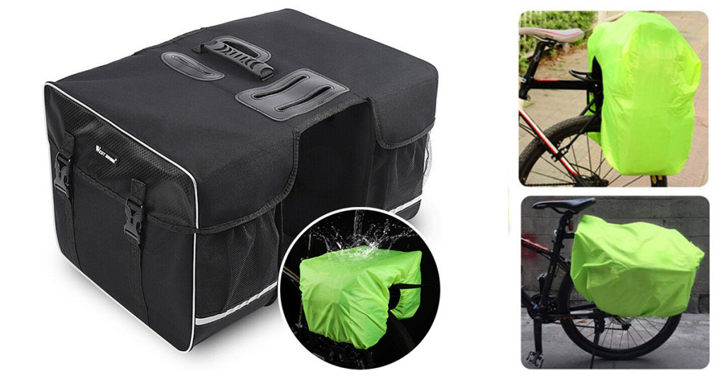 Husa impermeabila inclusa mentine valorile uscate chiar si pe timp de ploaie. Astfel, nu trebuie sa renuntati la o plimbarea placuta cu bicicleta intr-o zi innorata si nici o ploaie neasteptata nu va strica experienta plimbarii. Geanta pentru bicicleta cu doua fete poate fi montata usor si stabil, oferind o solutie de depozitare confortabila. Designul sau practic cu 2 compartimente va ajuta sa asezati lucrurile bine organizate in interiorul sau.