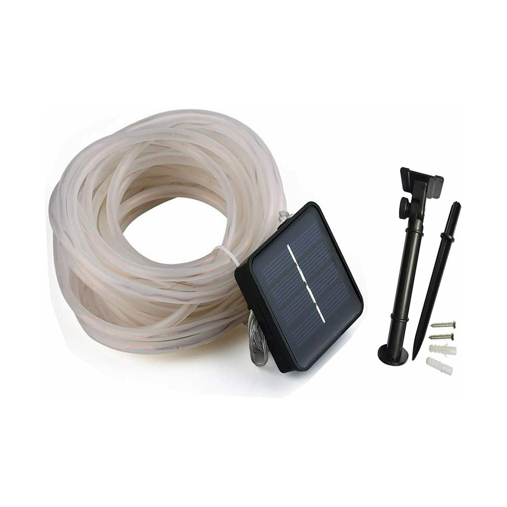 Bateria solară integrată de 600mA și panoul solar de 150mA asigură o funcționare eficientă și fără consum de energie electrică. După 6-8 ore de încărcare la soare, ghirlanda poate lumina întreaga noapte, oferind o soluție economică și prietenoasă cu mediul.