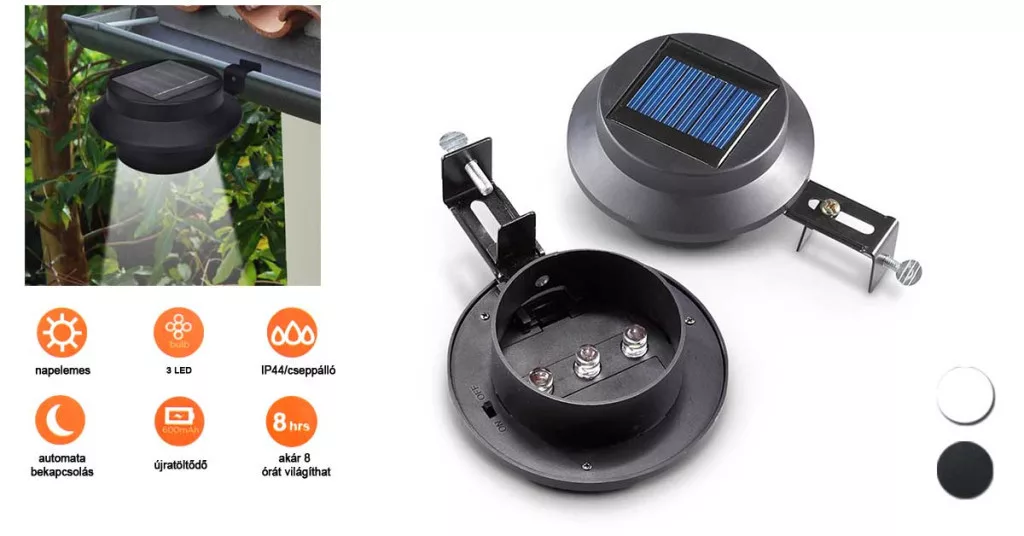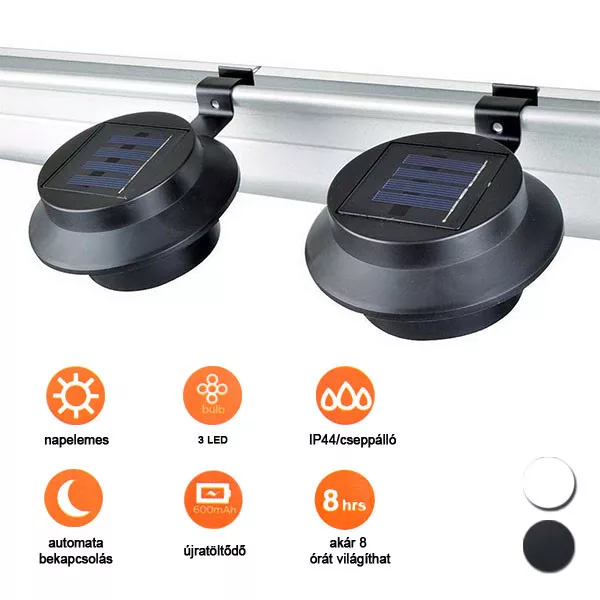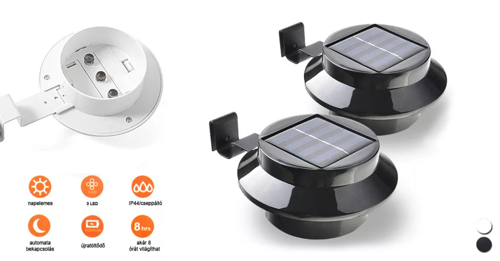 Setul de lămpi solare cu 2 bucăți are un design modern și minimalist, perfect pentru orice mediu exterior. Disponibile în culorile negru sau alb, lămpile se potrivesc ușor cu stilul casei tale. Acestea pot fi montate cu ușurință pe jgheaburi, garduri sau balustrade, fără a necesita alimentare electrică.