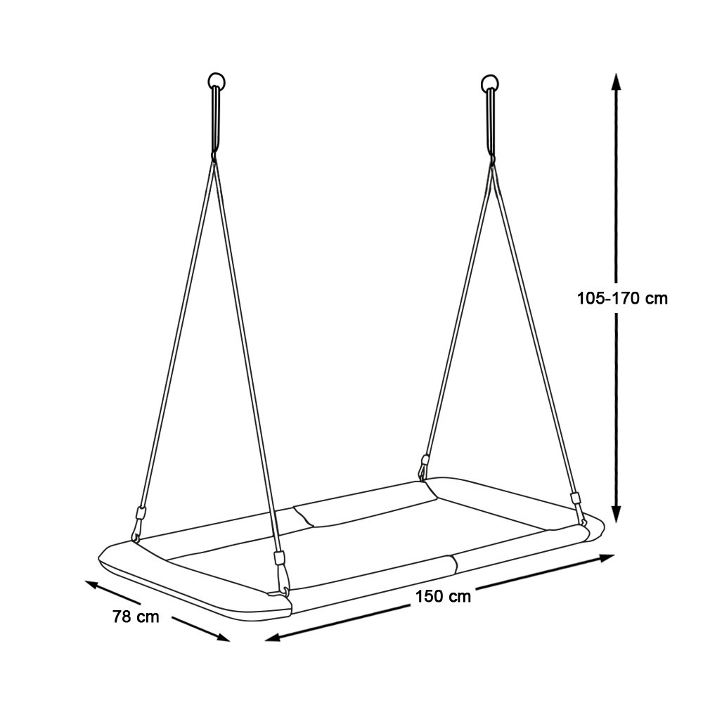 Nu mai este nevoie să mergi la locul de joacă – cu acest leagăn tip cuib te poți bucura de distracție chiar în grădina sau locuința ta. Dimensiunea de 150x78 cm oferă suficient spațiu pentru mai mulți copii sau chiar un adult.