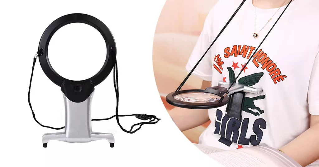 Designul suspendat și suportul pliabil oferă libertate totală mâinilor, fiind ideal pentru lucrări manuale, broderie, modelism sau hobby-uri. Distribuția echilibrată a greutății și șnurul moale fac ca utilizarea prelungită să fie comodă.