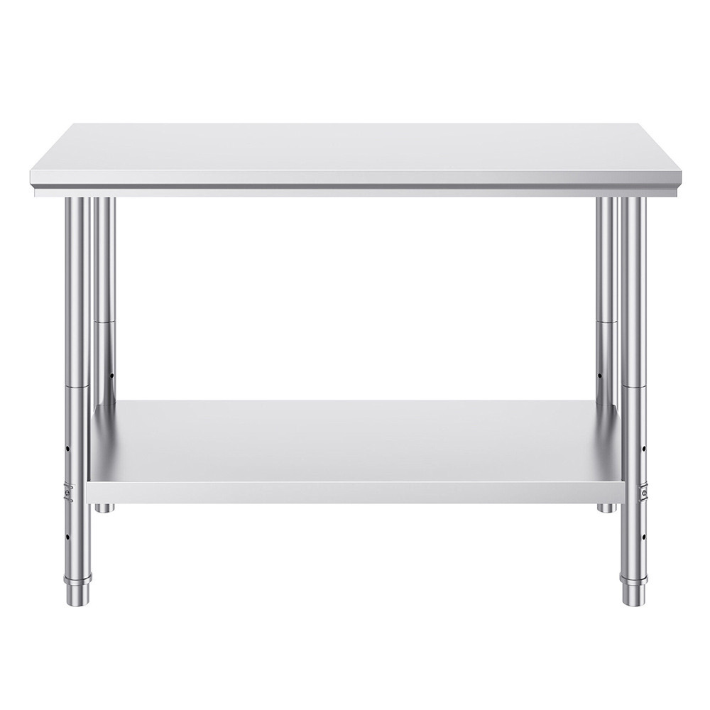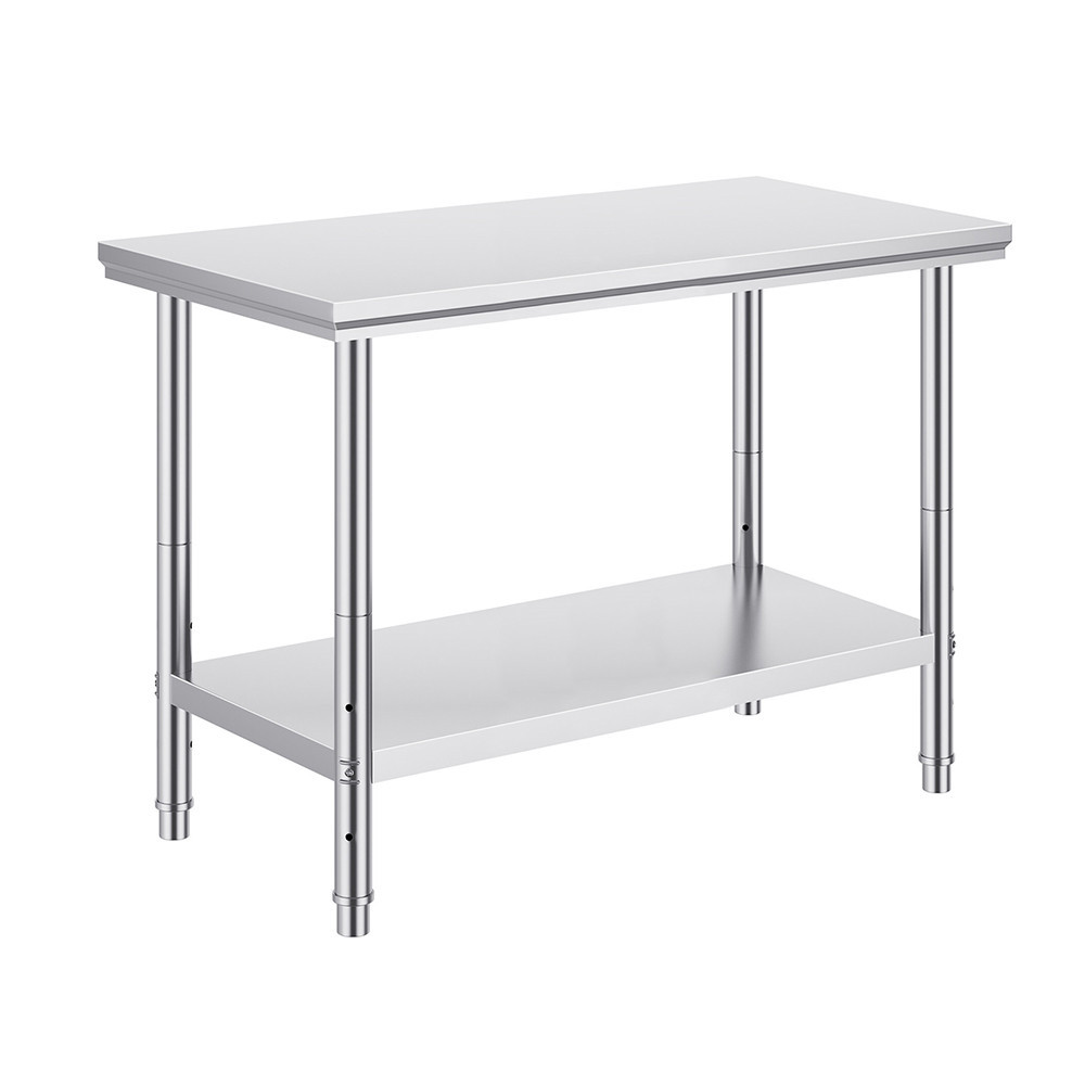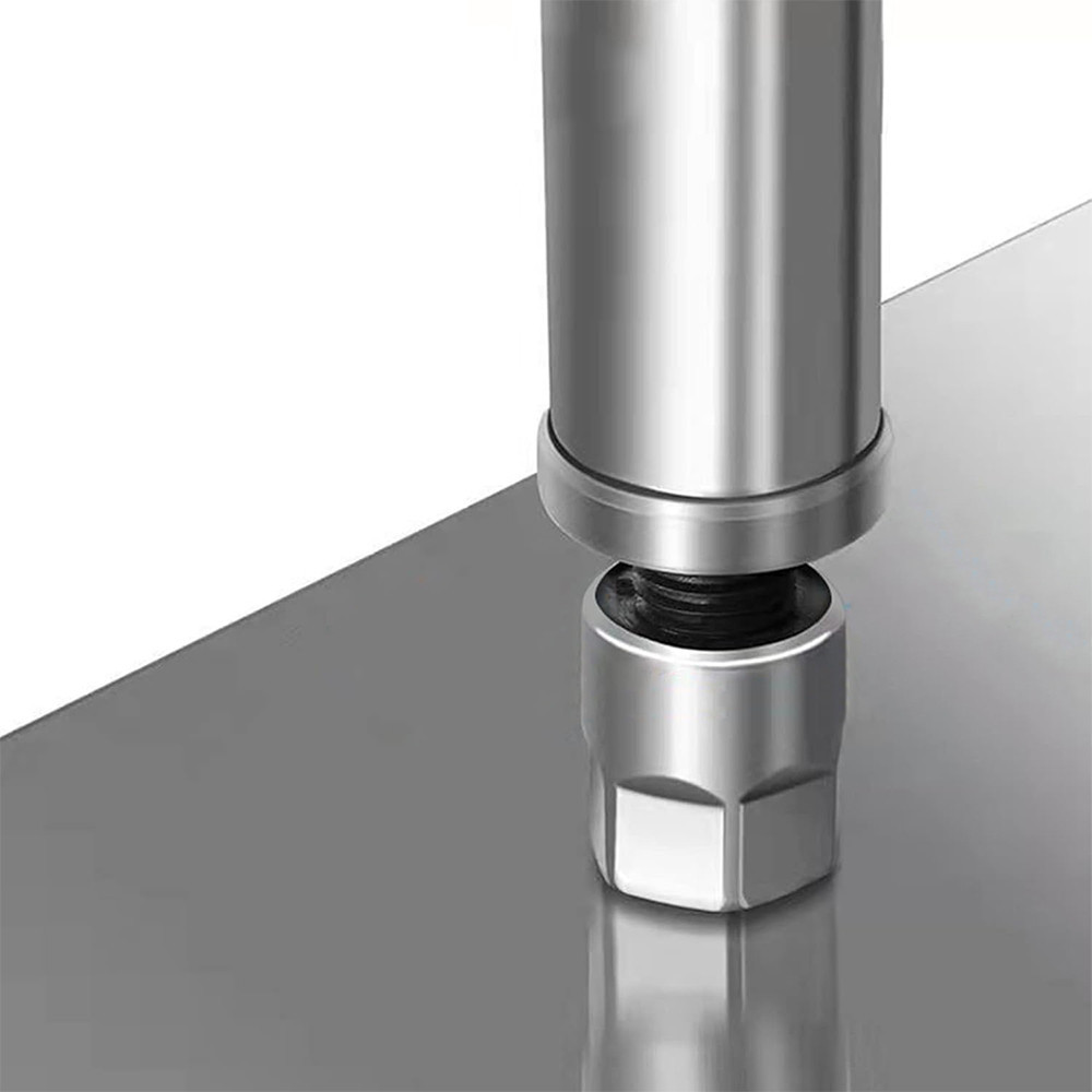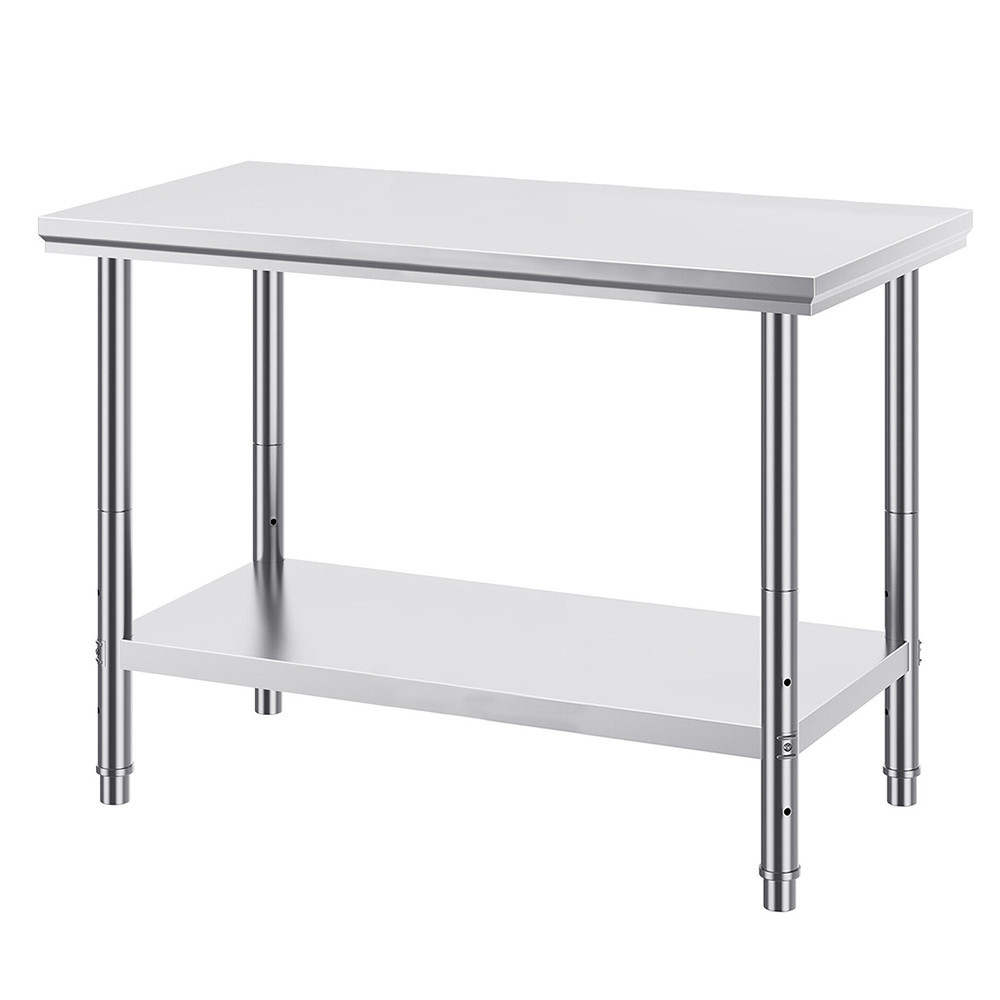 Suprafețele ruginită și instabile nu doar că îngreunează munca, dar pot compromite și igiena alimentelor. Dacă cauți o suprafață de lucru care să fie durabilă, ușor de întreținut și care să reziste la uzura din bucătărie, această masă este alegerea ideală. Masa măsoară 120 × 60 × 78.5 cm. Blatul de 6 cm grosime este robust, iar materialul din oțel inoxidabil 201 (SS201) asigură o utilizare de lungă durată. Raftul inferior este poziționat la 13 cm de podea și la 66 cm de blatul mesei, oferind suficient spațiu pentru unelte mai mari sau lăzi.