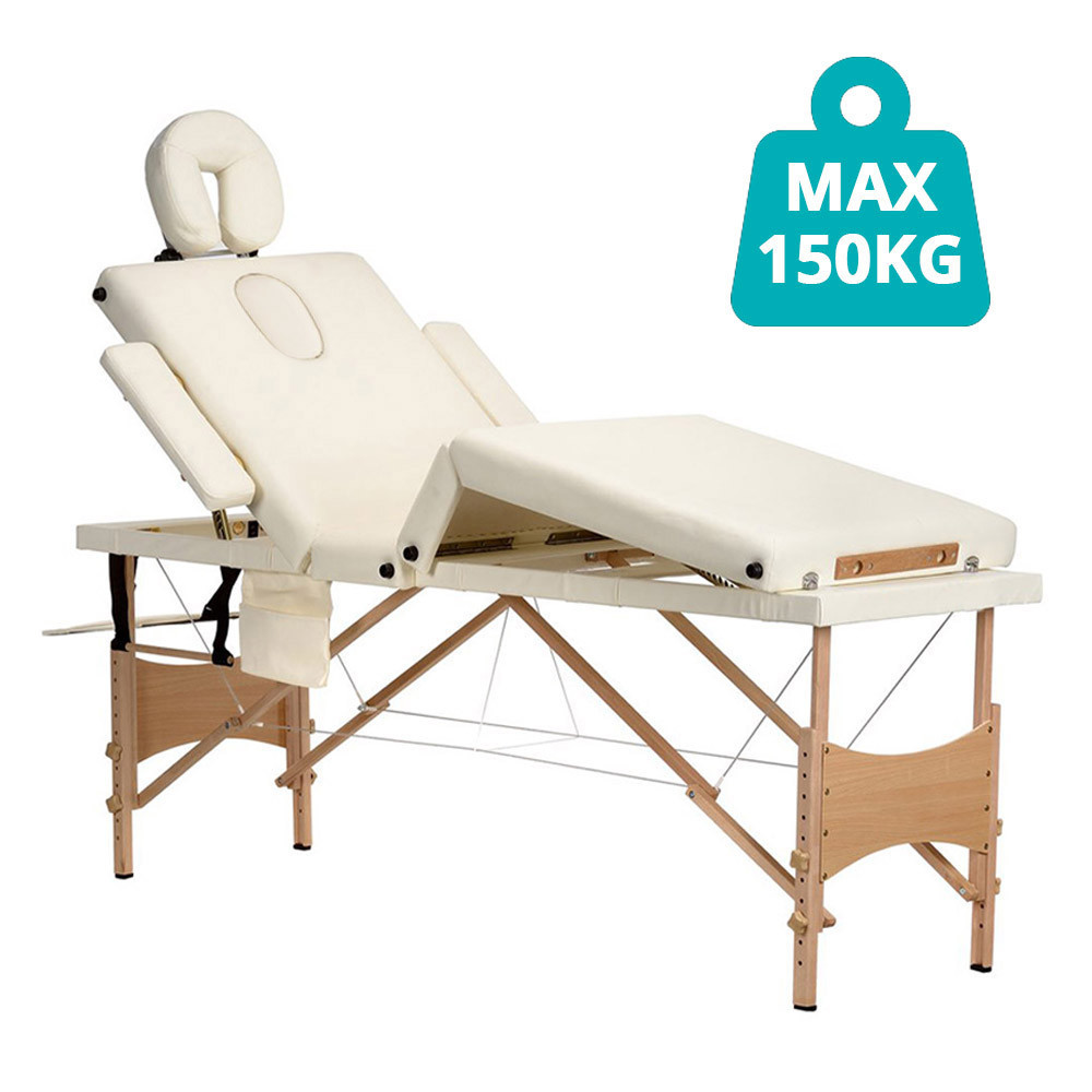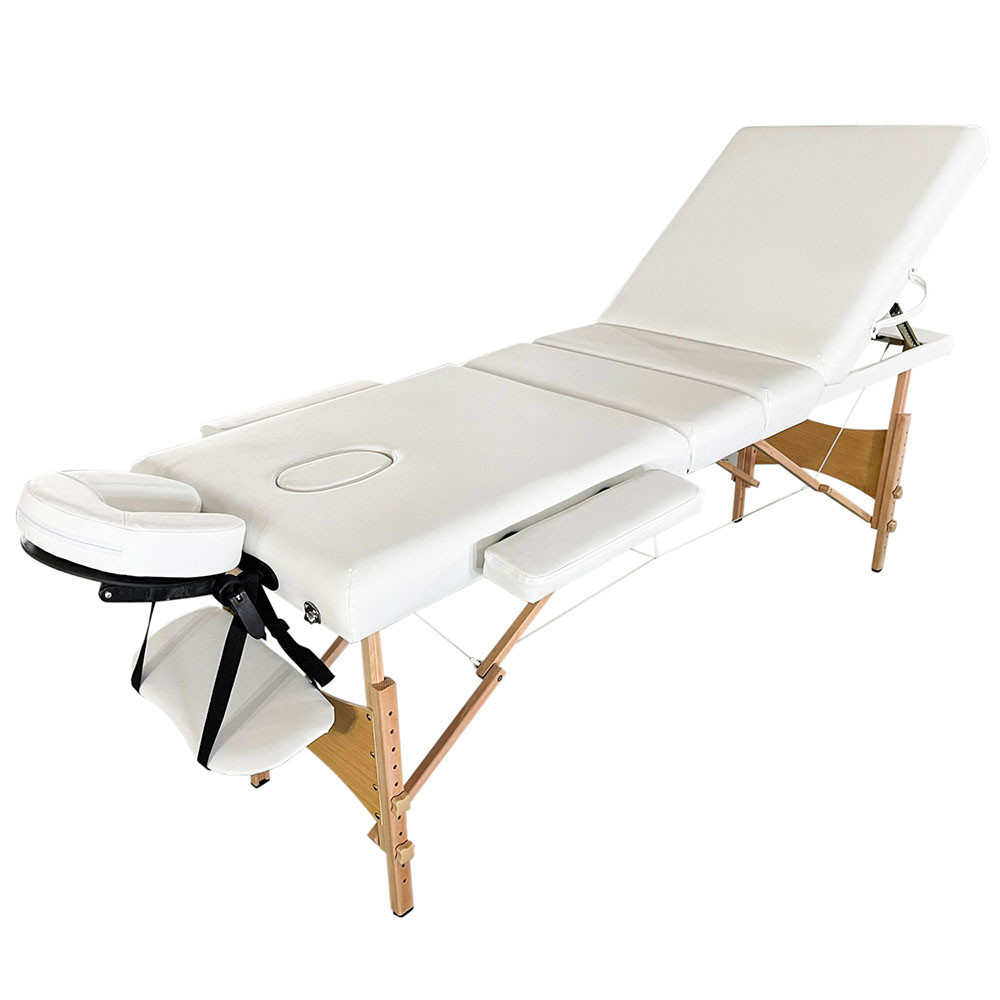 Această masă de masaj este dotată cu 4 zone independente, permițând o susținere perfectă a fiecărei părți a corpului. Tetiera, suportul pentru picioare și cotierele sunt reglabile, astfel încât să îți poți personaliza poziția de relaxare. Salteaua de 6 cm grosime asigură confort pe toată durata ședinței.