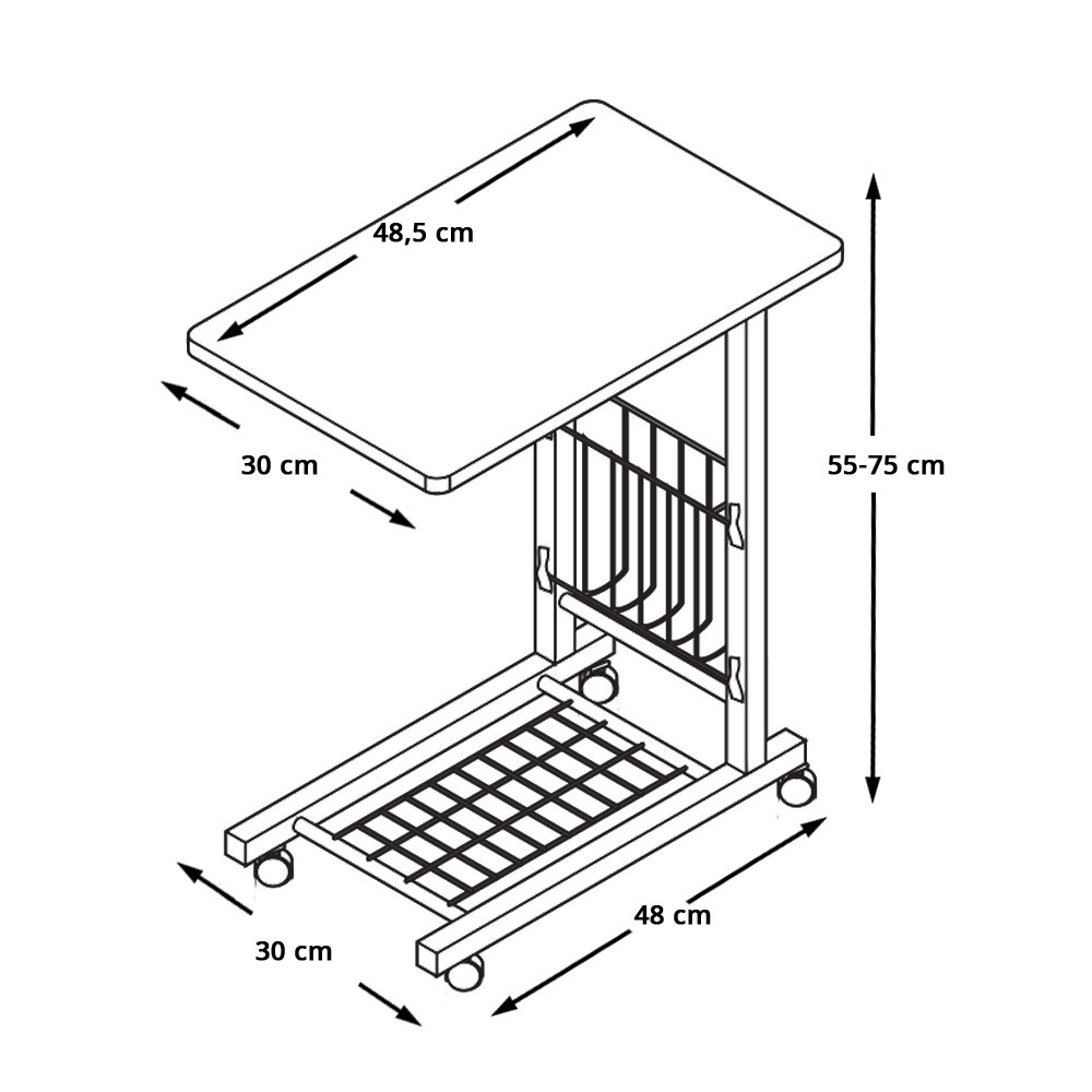 Cu un cadru solid din metal și o suprafață de lucru din lemn de calitate, acest suport este proiectat pentru a rezista în timp. Spațiile de depozitare integrate includ un raft inferior ideal pentru obiecte mici și un suport lateral pentru cărți, reviste sau alte accesorii.