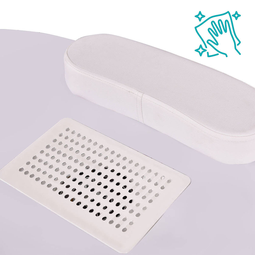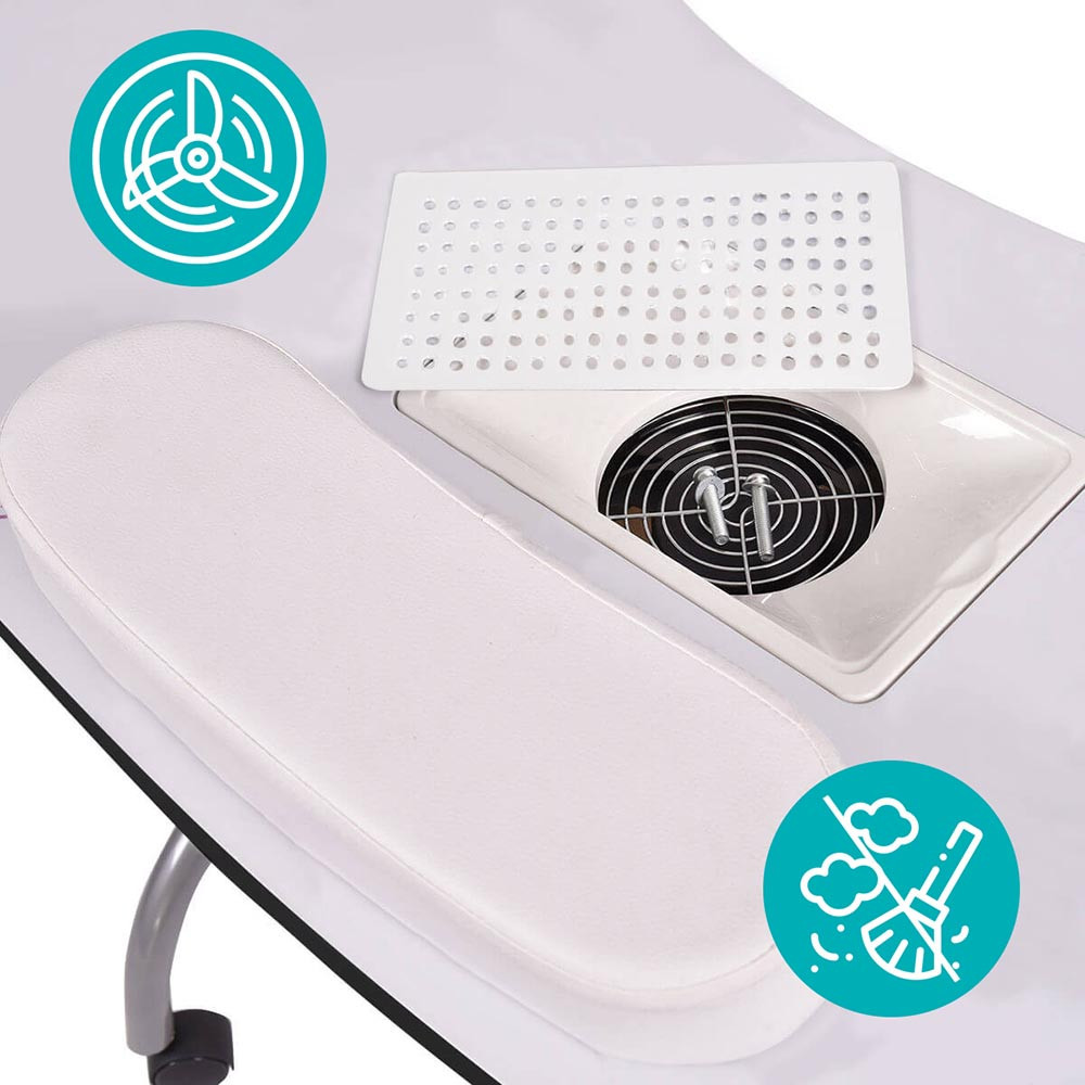 Ventilatorul încorporat absoarbe imediat praful rezultat din pilirea unghiilor, colectat într-un săculeț special. Acest model este ideal pentru un mediu de lucru curat și precis, fie în salon, fie în deplasare.