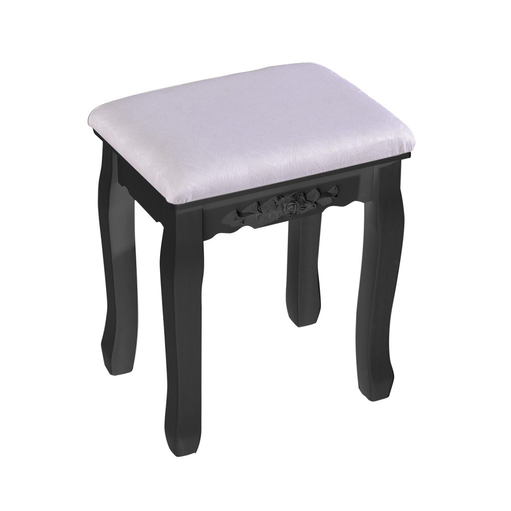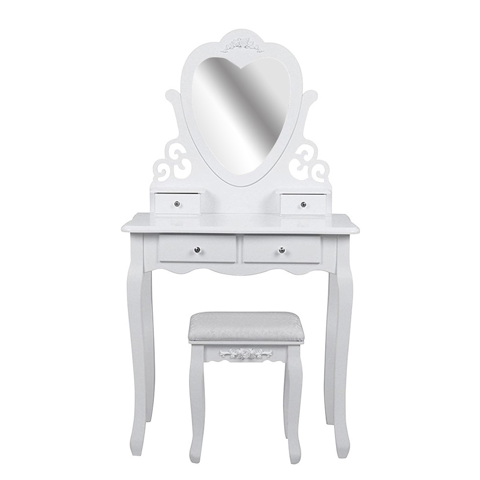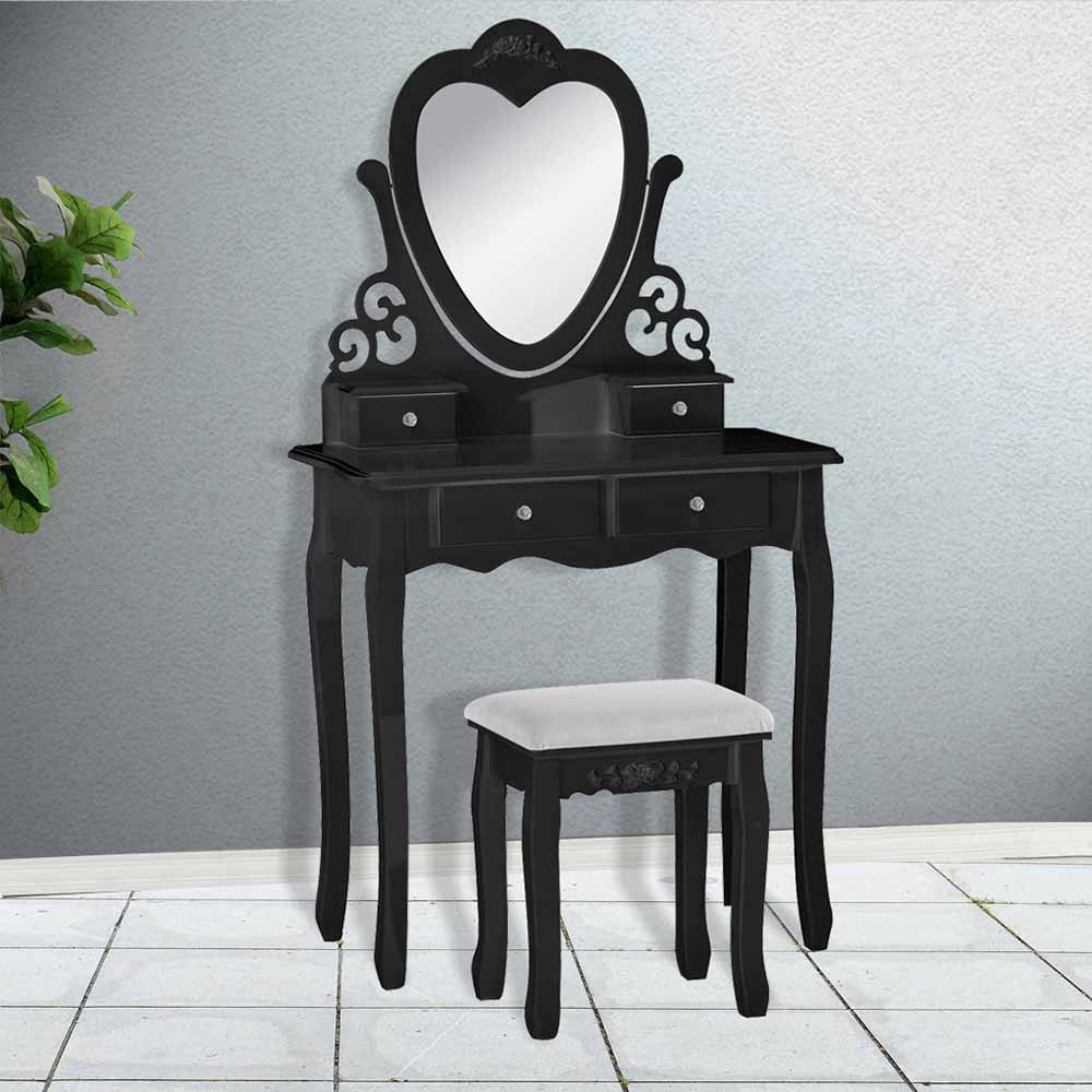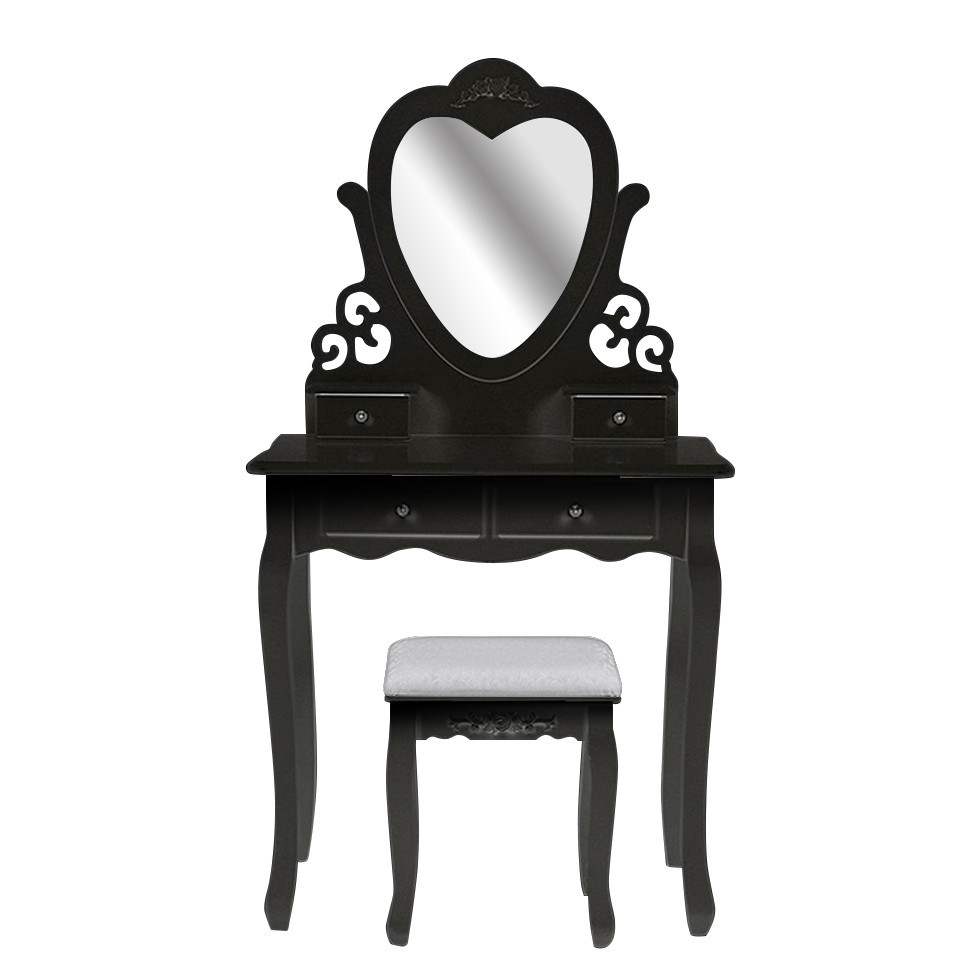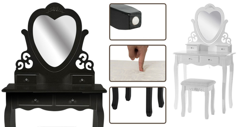 Această masă de toaletă cu oglindă, realizată din lemn, este o piesă clasică ce se potrivește perfect în dormitor, dressing sau chiar într-un salon elegant. Scaunul tapițat inclus este confortabil și decorativ, oferind o experiență plăcută în fiecare moment petrecut în fața mesei. Compartimentele integrate permit organizarea ușoară a accesoriilor, machiajelor sau bijuteriilor. Partea superioară detașabilă permite utilizarea mesei și ca birou.