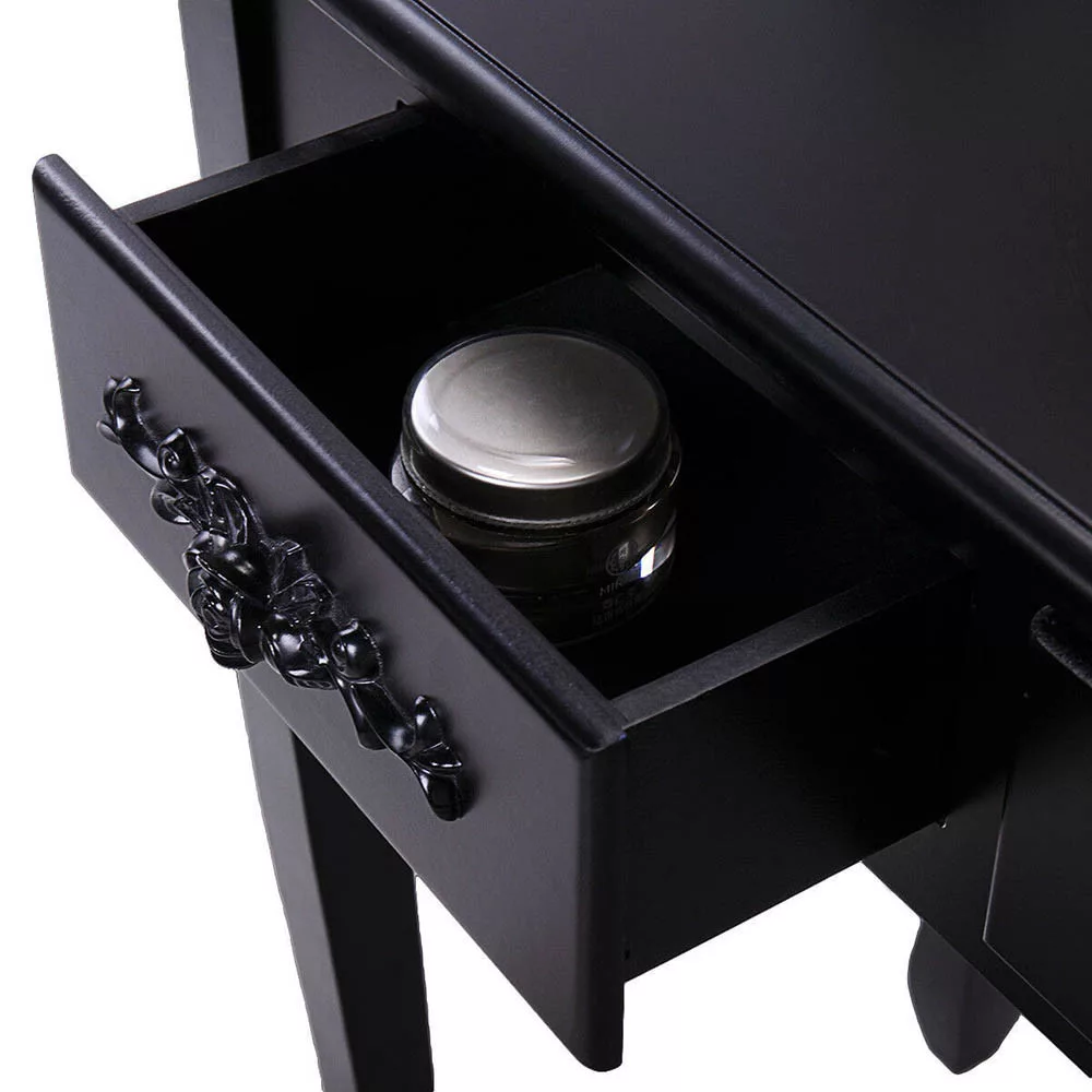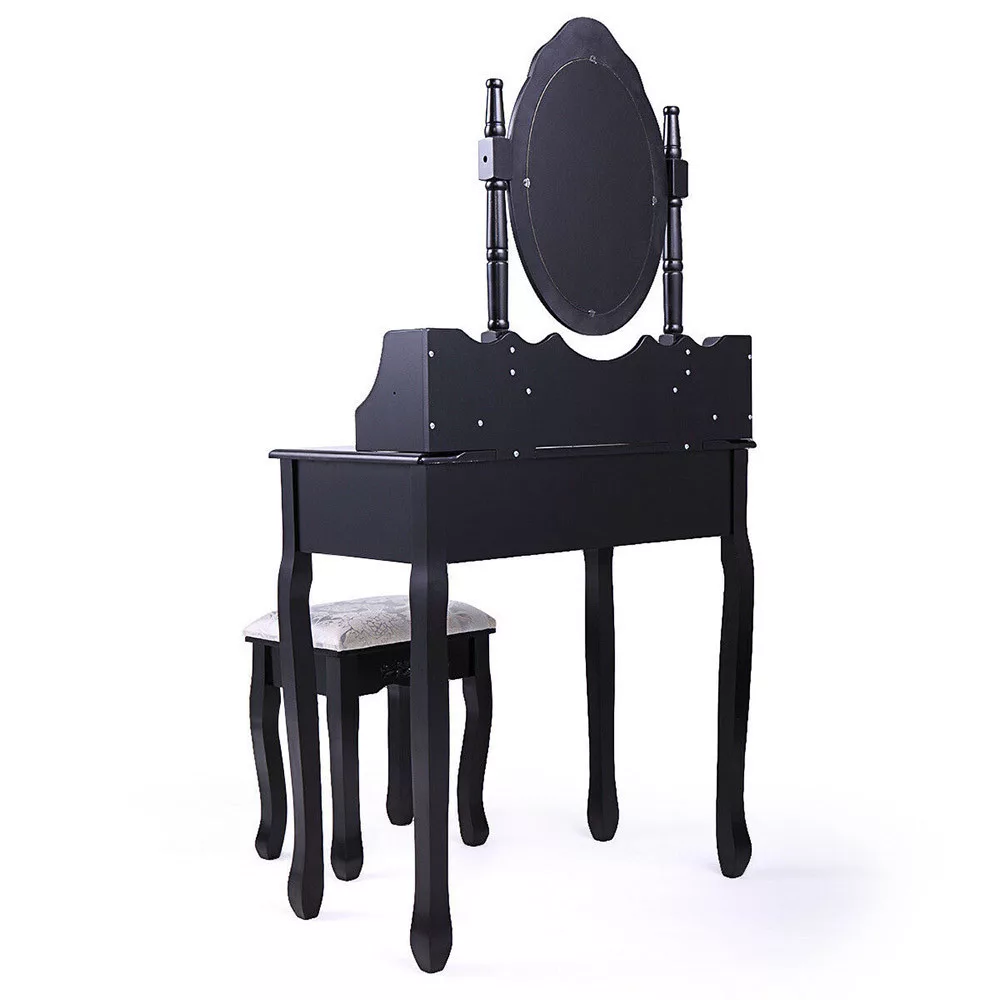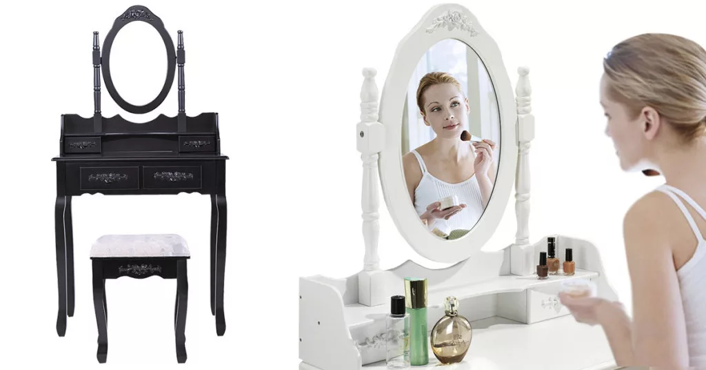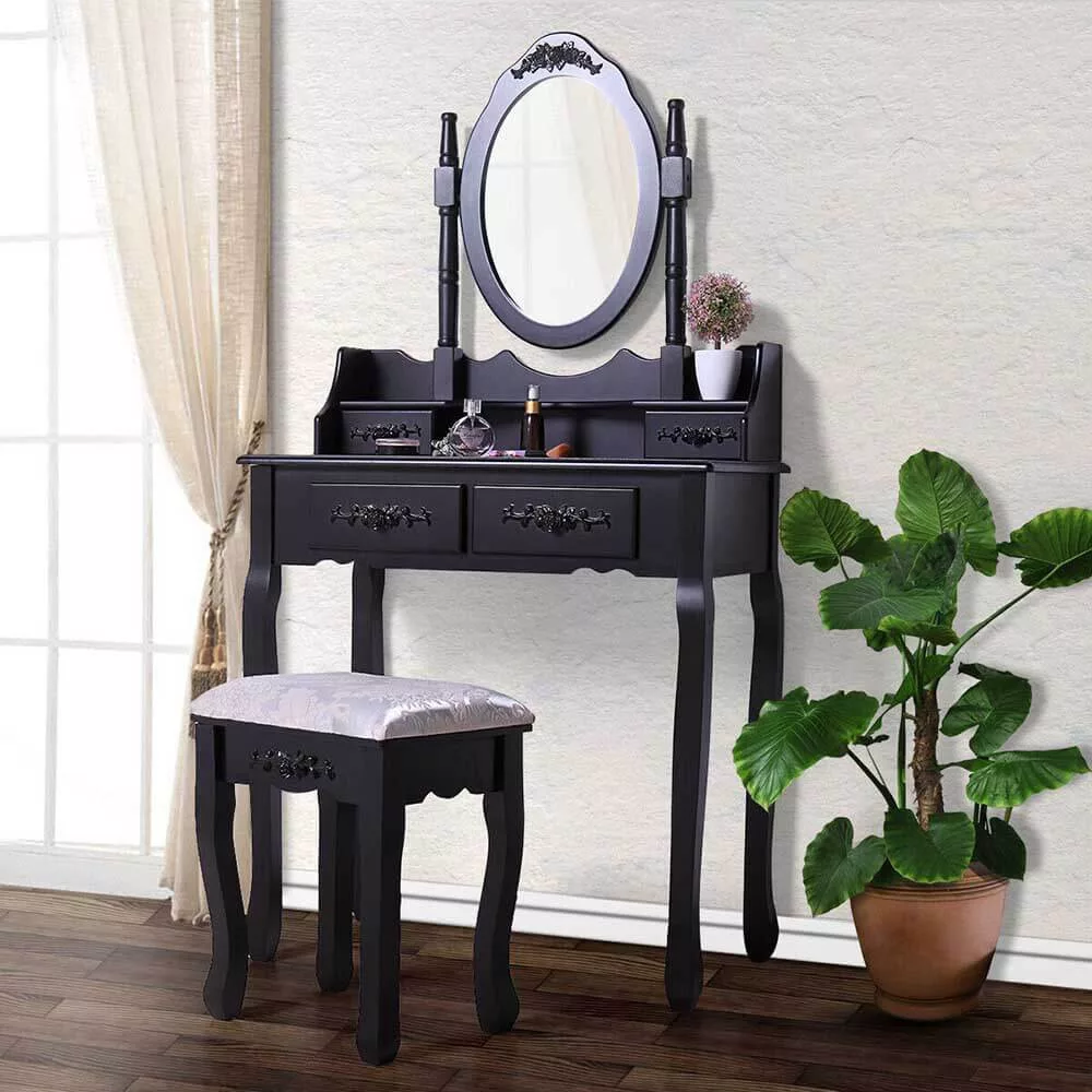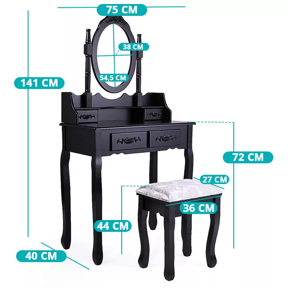 Masa de toaletă este echipată cu patru sertare: două mai mici pe partea superioară și două mai mari sub blat, menținând toate accesoriile la îndemână. Datorită părții superioare detașabile, poate fi utilizată și ca birou, integrându-se perfect în orice decor.