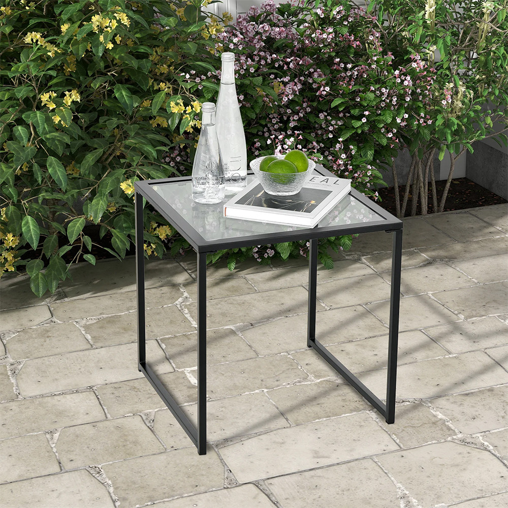 Cadrul din metal negru și blatul din sticlă transparentă îi conferă un aspect modern, dar subtil. Poate fi combinată cu ușurință cu diverse stiluri de mobilier pentru interior sau exterior.