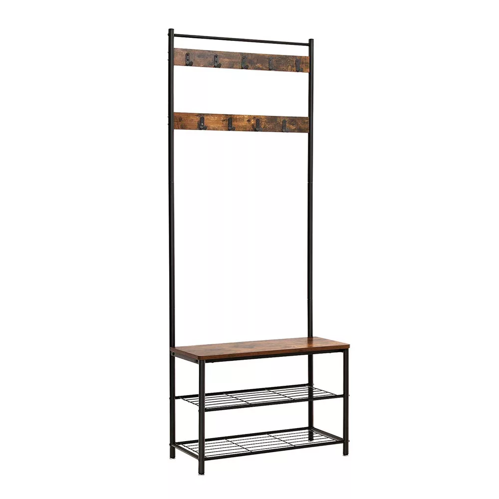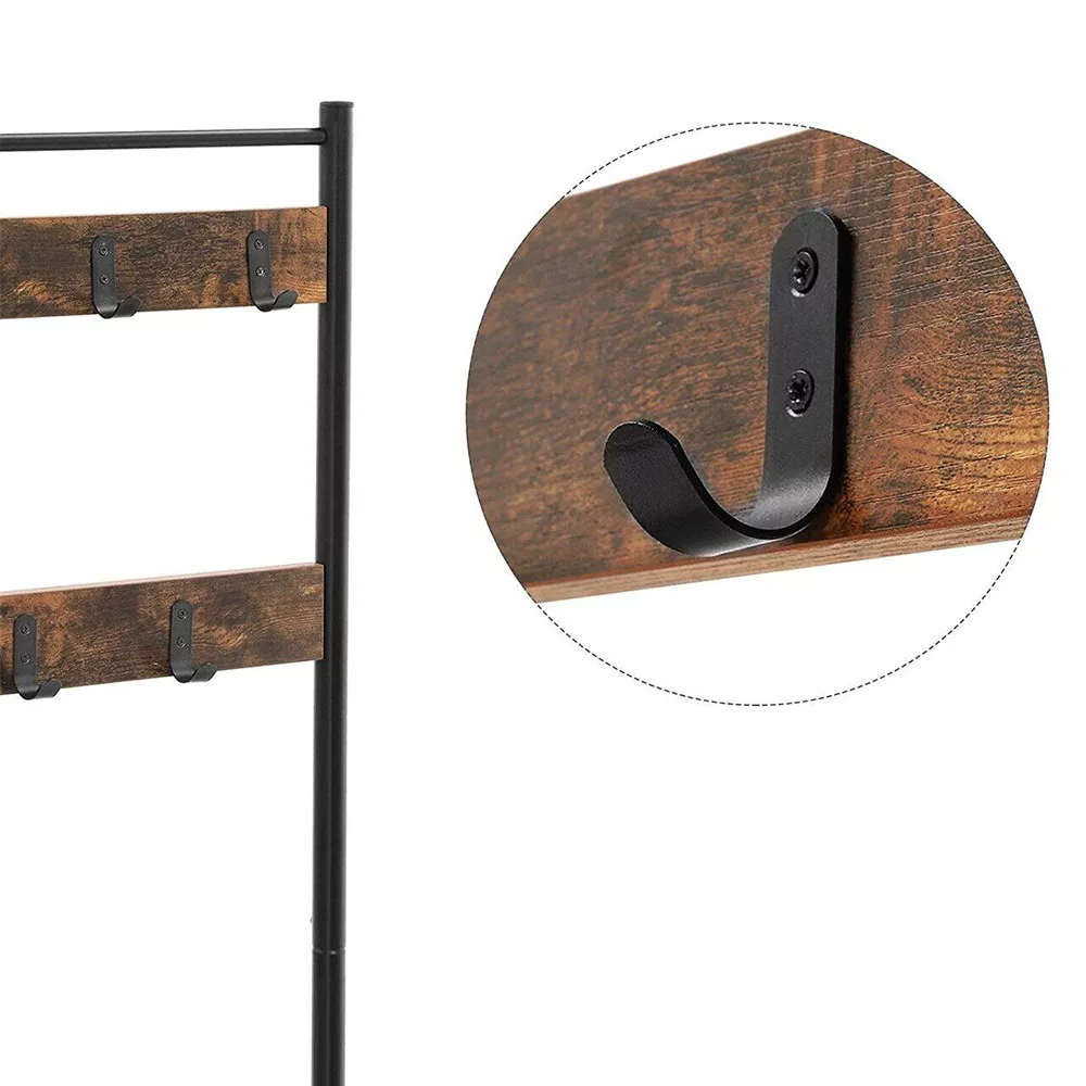 Cârligele metalice rezistente, dispuse pe două rânduri, oferă suficient spațiu pentru paltoane, genți, eșarfe și alte accesorii.