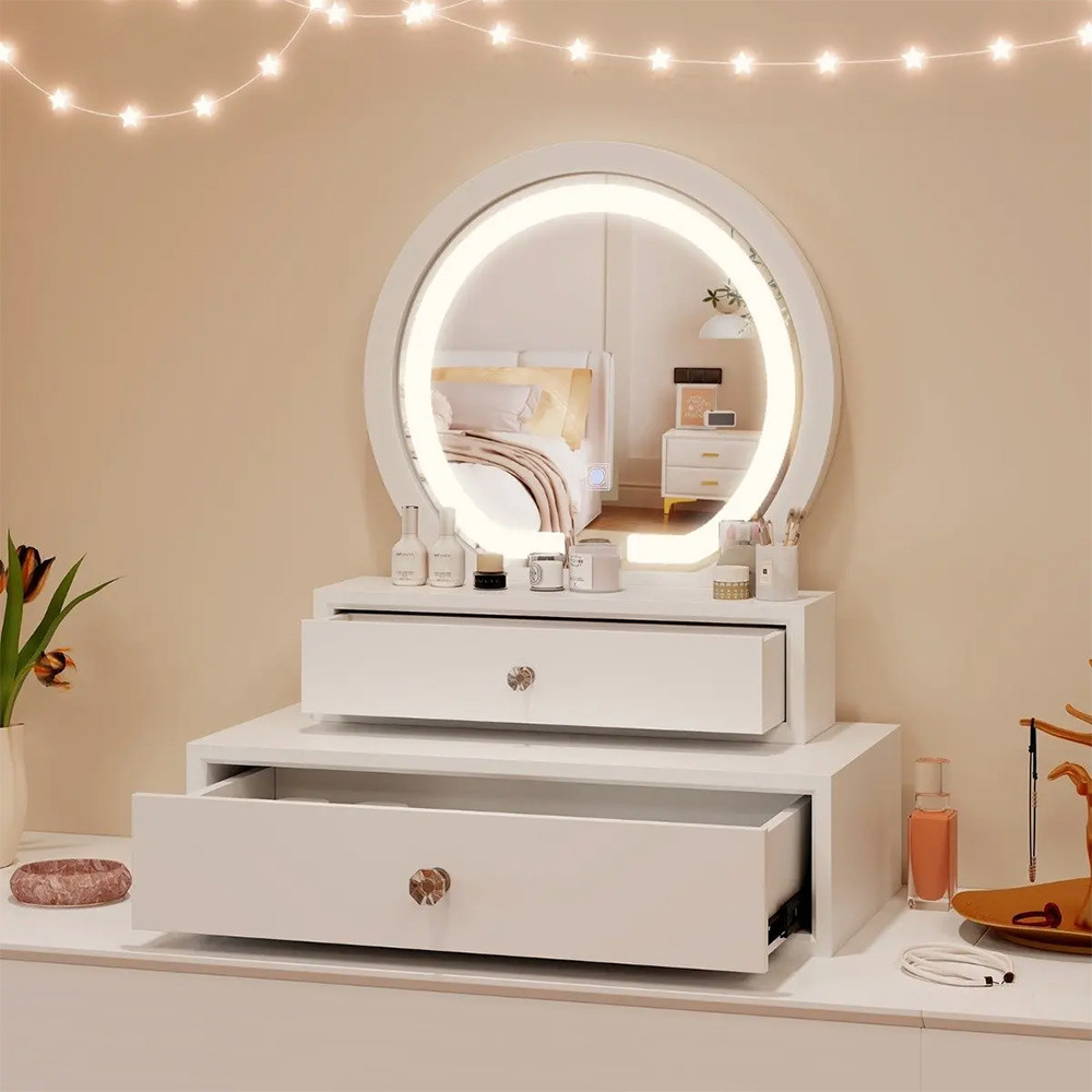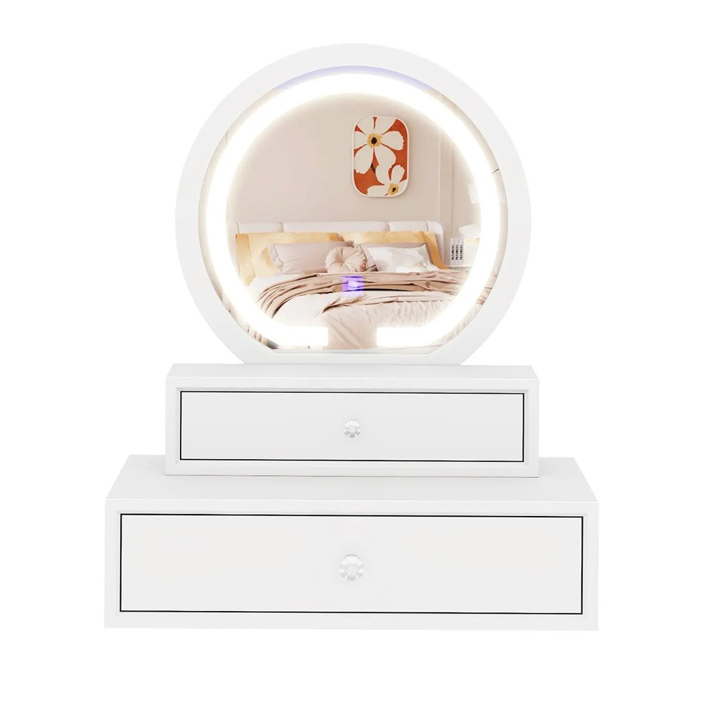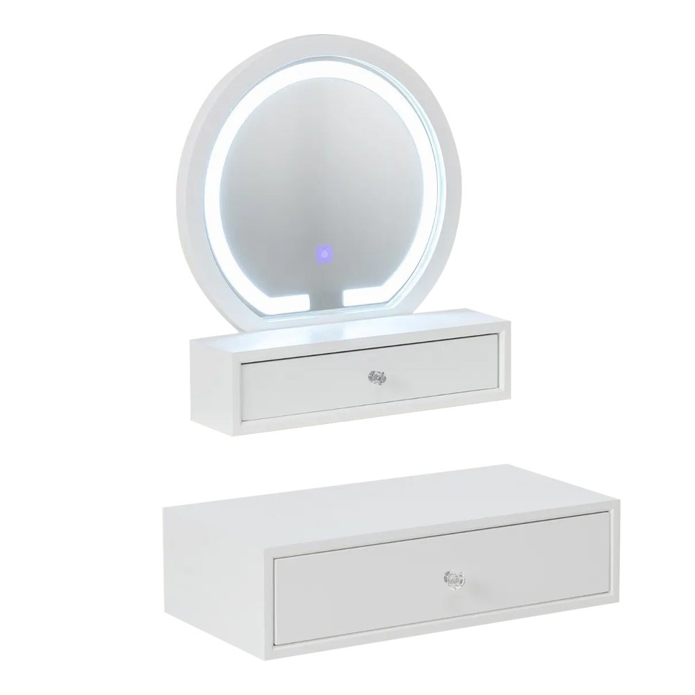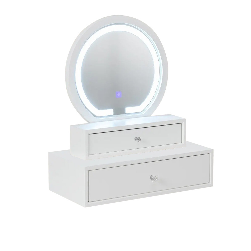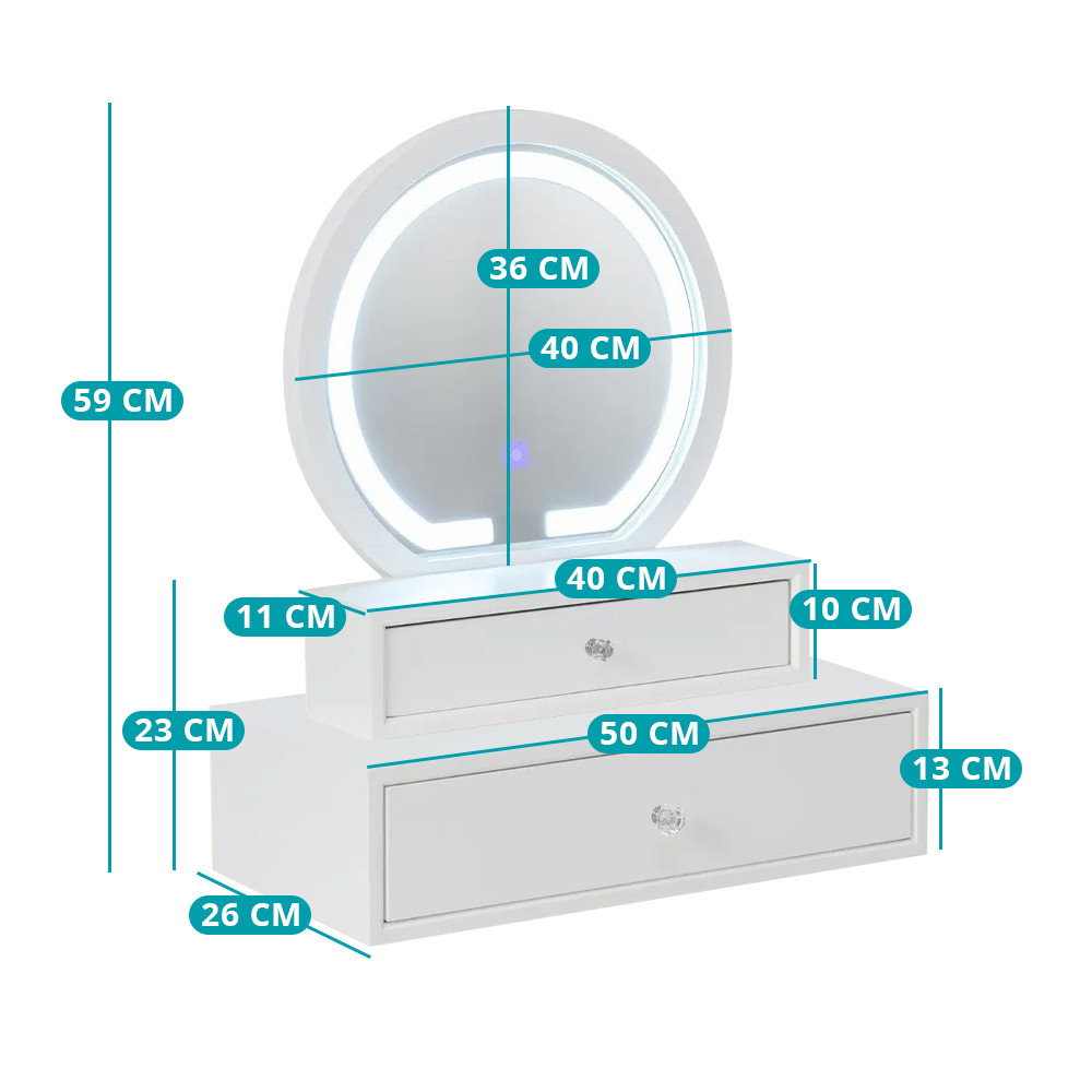 Cele două sertare oferă suficient spațiu pentru cosmetice, bijuterii și accesorii de machiaj. Sertarele sunt detașabile și pot fi folosite separat, în timp ce mânerele din cristal adaugă o notă elegantă aspectului general.