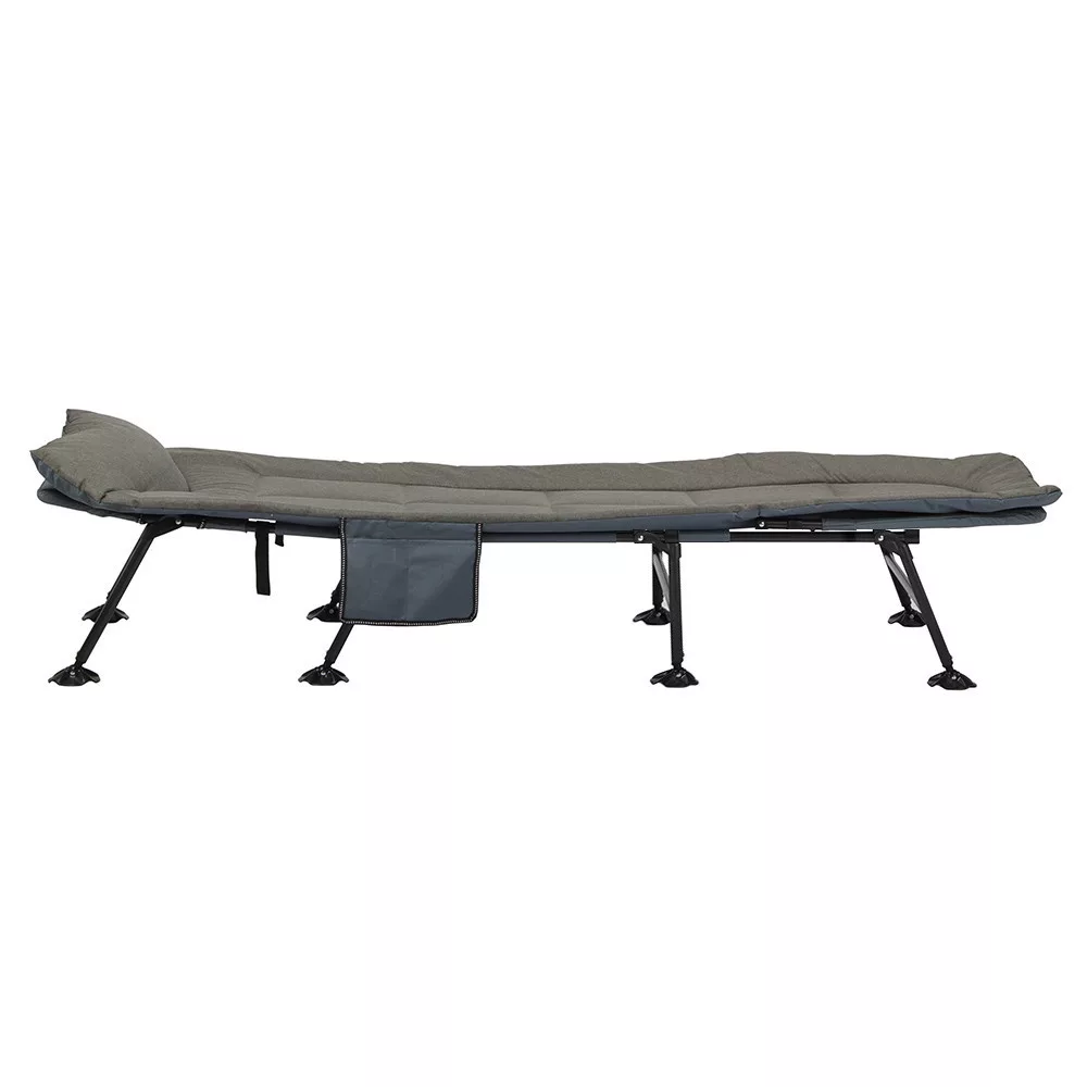 Buzunarul lateral este ideal pentru depozitarea telefonului, cărții sau unei lanterne. Pliat, patul ocupă puțin spațiu și este ușor de transportat – ideal pentru iubitorii de natură.