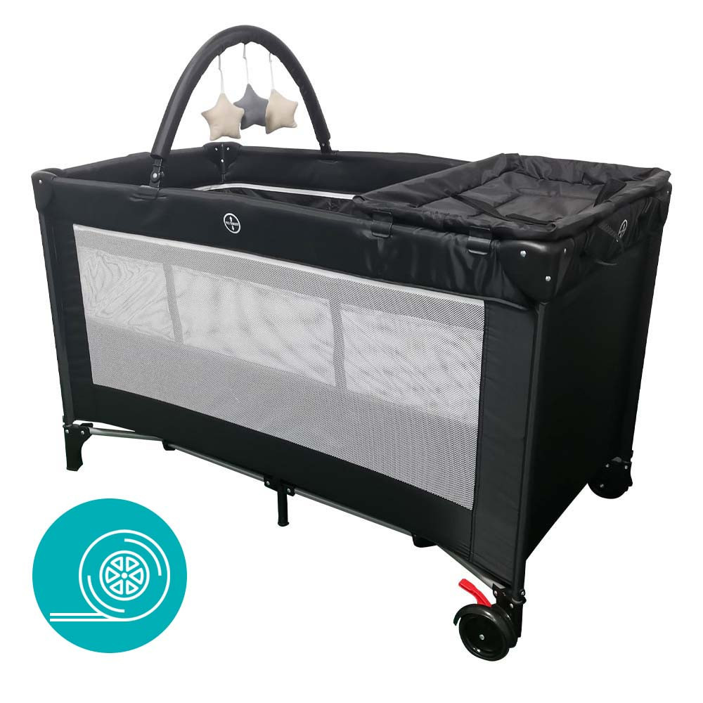 Il puteti plia cu usurinta patutul si-l puteti lua cu dvs. in vacante si excursii, dar serveste bine si atunci cand vizitati rudele. Patutul este echipat si cu o bara de jucarii detasabila, cu jucarii colorate, care vor capta atentia copilului dumneavoastra in timpul odihnei si inainte de a adormi. Cu salteaua de infasat atasabila, nu trebuie sa cautati un loc separat pentru schimbarea scutecelor sau pentru a-l imbraca copilasul dupa baie.