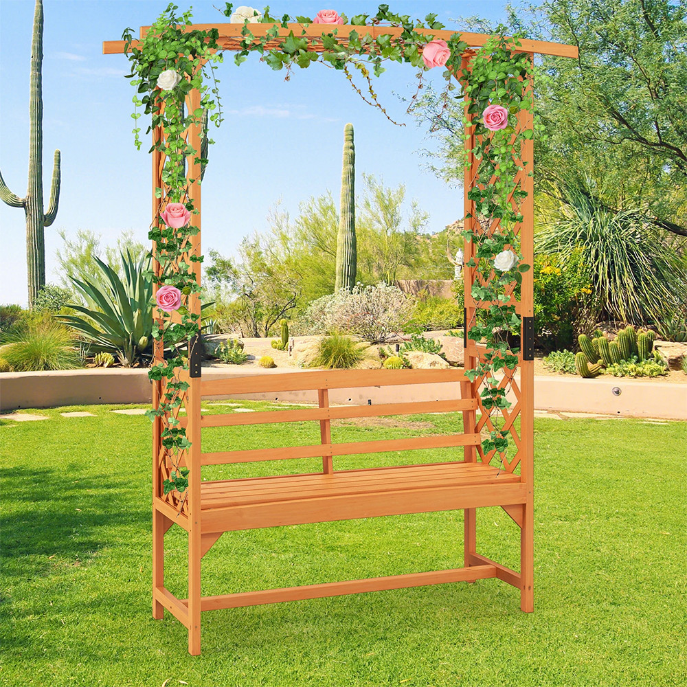 Designul arcuit și panourile laterale tip grilaj sunt ideale pentru trandafiri, clematite sau alte plante cățărătoare. Pe măsură ce plantele acoperă structura, creează un spațiu cu adevărat fermecător și apropiat de natură.