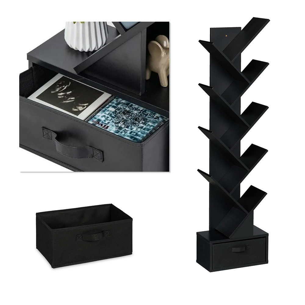 Raftul dispune de un total de 10 compartimente deschise, perfecte pentru a susține cărți, plante sau obiecte decorative. Sertarul textil situat în partea de jos permite o depozitare discretă – dar, dacă este necesar, îl puteți îndepărta pentru un spațiu suplimentar pe raft.