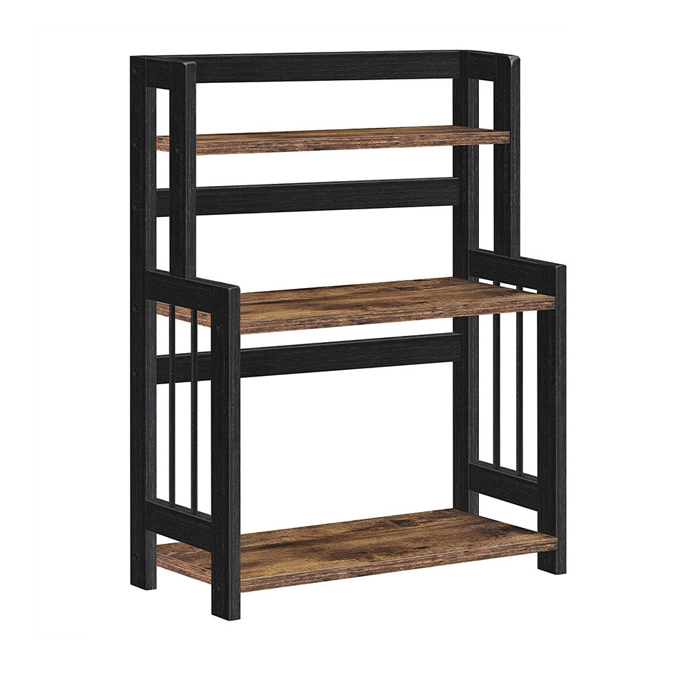 Rafturile de culoare maro rustic și elementele de cadru negre creează un efect armonios, făcând acest depozit nu doar practic, ci și o adăugare decorativă în bucătăria, zona de dining sau chiar biroul tău.