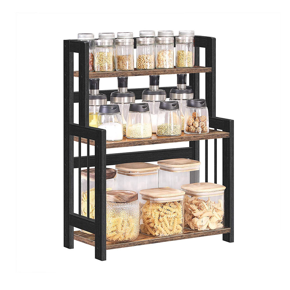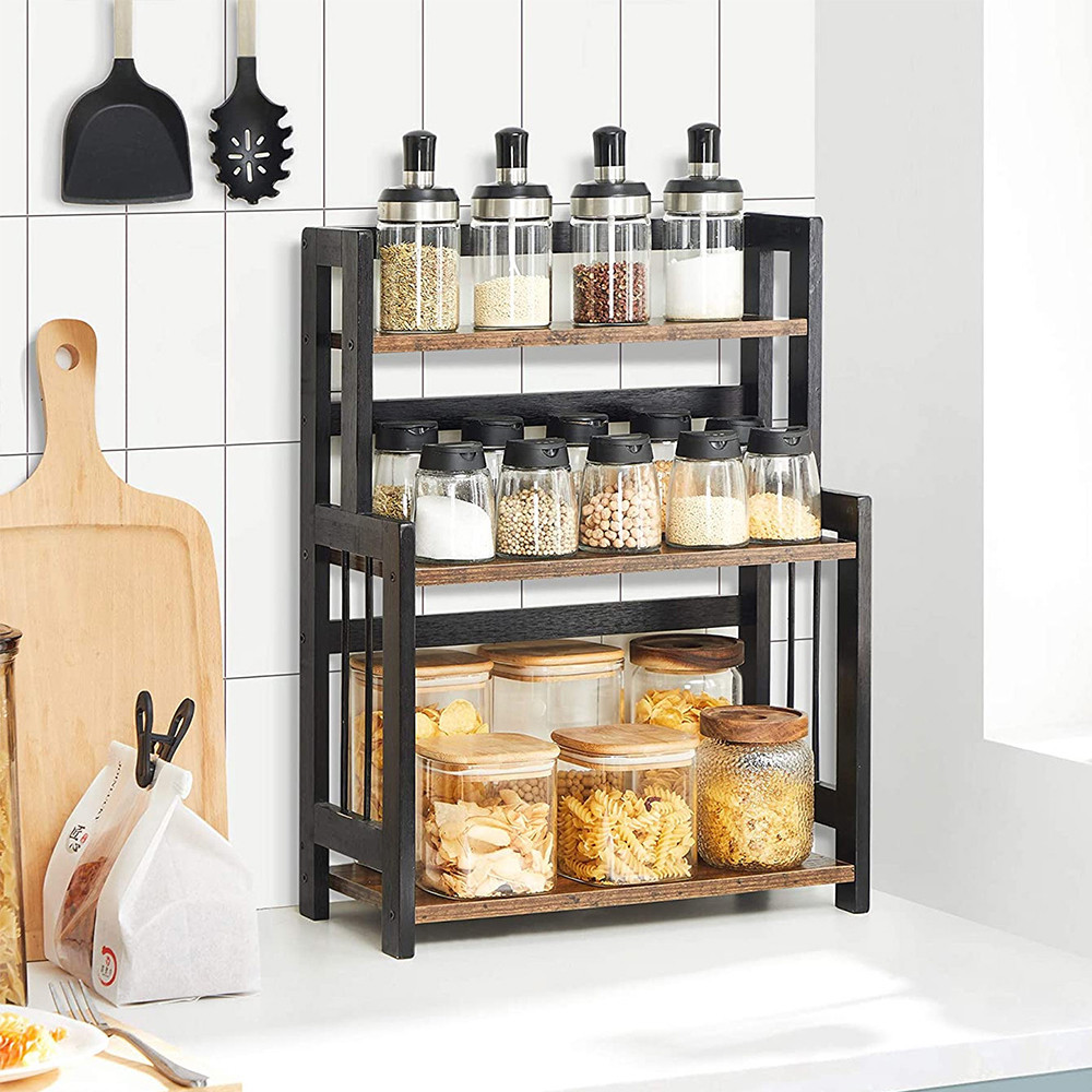 Cele trei niveluri oferă suficient spațiu pentru a depozita diverse esențiale de bucătărie sau unelte mai mici. Cu acest raft, poți menține cu ușurință ordinea pe blatul tău, lăsând mai mult loc pentru pregătire și gătit.