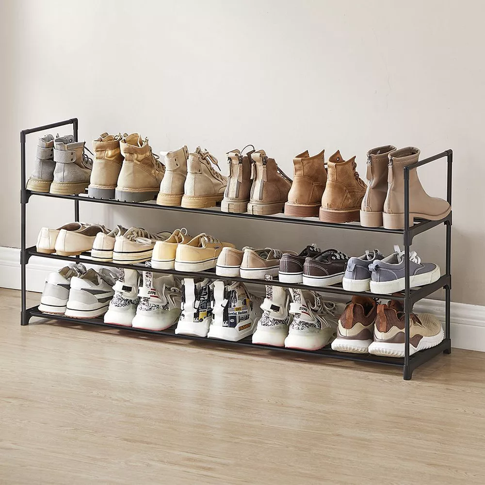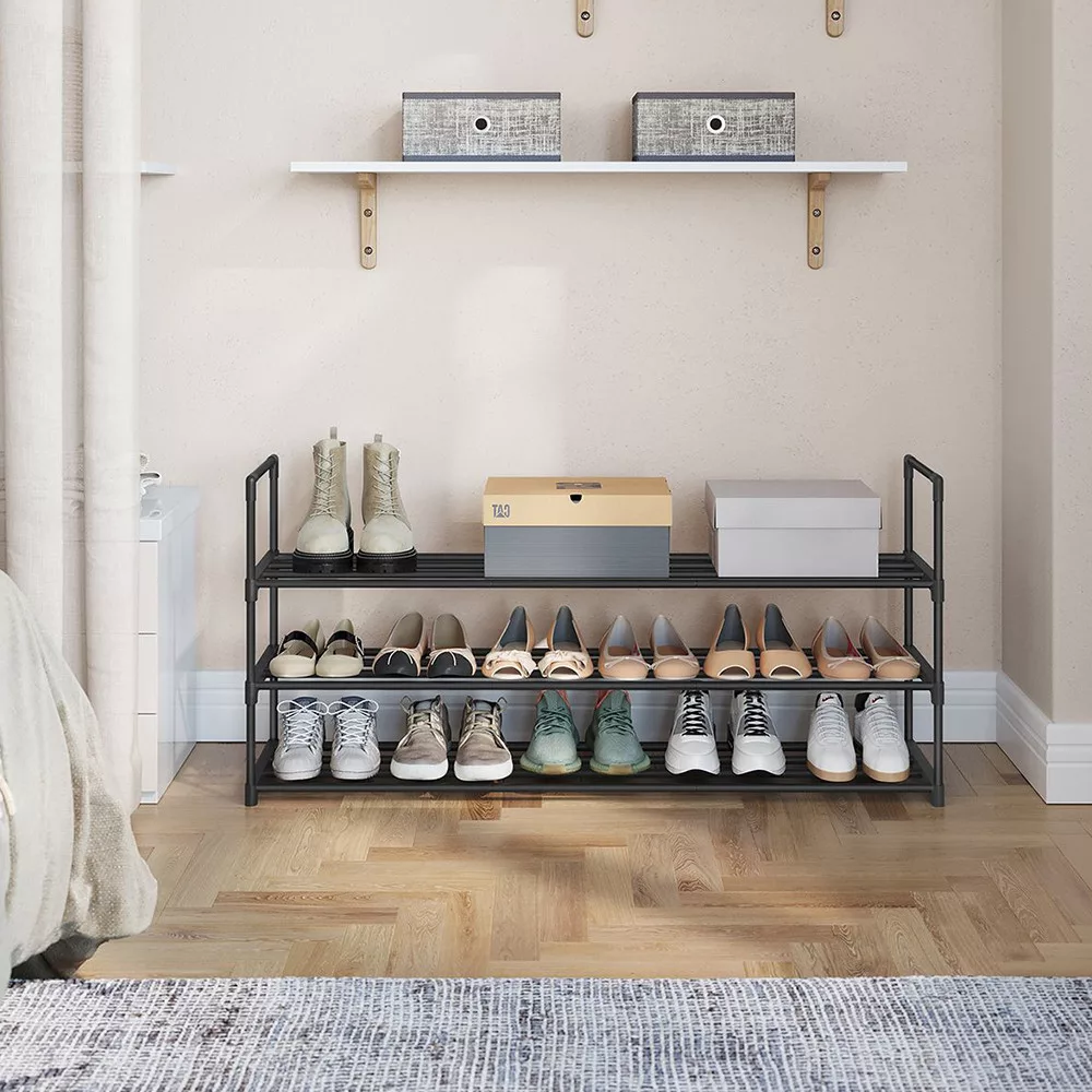 Aceast raft de pantofi cu 3 niveluri poate acomoda până la 18 perechi de pantofi, permițându-ți să îți organizezi ușor încălțămintea acasă. Dimensiunile sale compacte (116 × 30 × 55 cm) înseamnă că se potrivește în spații mici, oferind în același timp un spațiu de stocare generos.