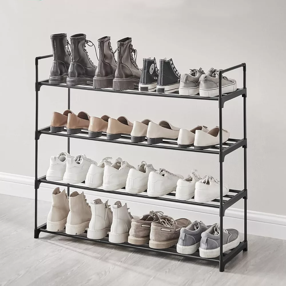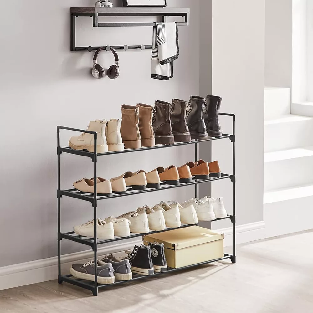 Cu raftul metalic pentru pantofi cu 4 etaje, poți găsi cu ușurință loc pentru 16-20 de perechi de pantofi. Este ideal pentru utilizarea în hol, dulap sau dormitor, iar aspectul său elegant de culoare neagră se potrivește în orice spațiu.