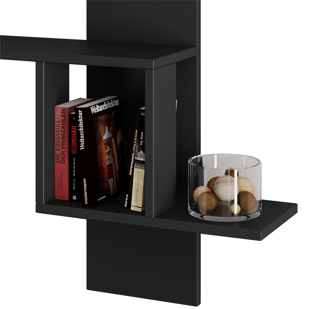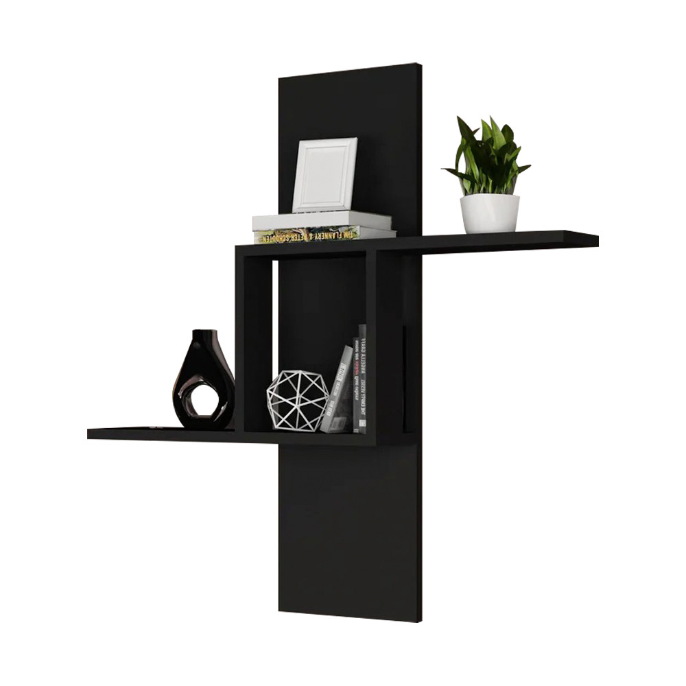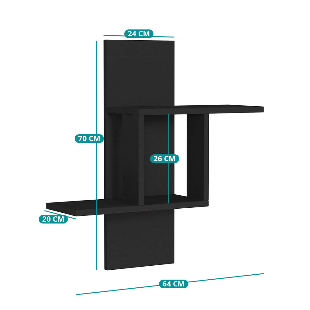 Raftul suspendat antracit oferă un aspect curat, dar îndrăzneț. Designul său geometric îmbunătățește vizual spațiul, oferind în același timp opțiuni practice de depozitare.