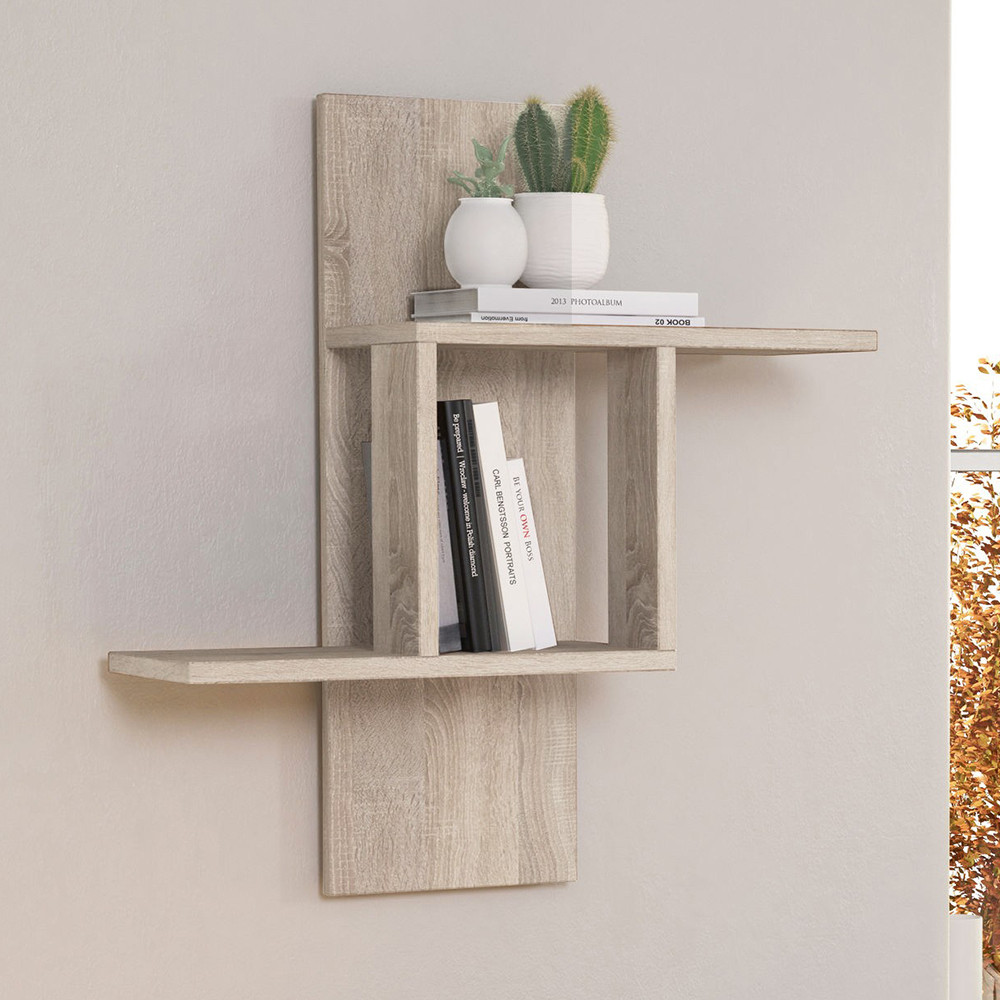 Designul cu mai multe niveluri este ideal pentru a plasa cărți, obiecte decorative și plante mici. Cu o adâncime de 20 cm, poate fi utilizat confortabil în camere mai mici.