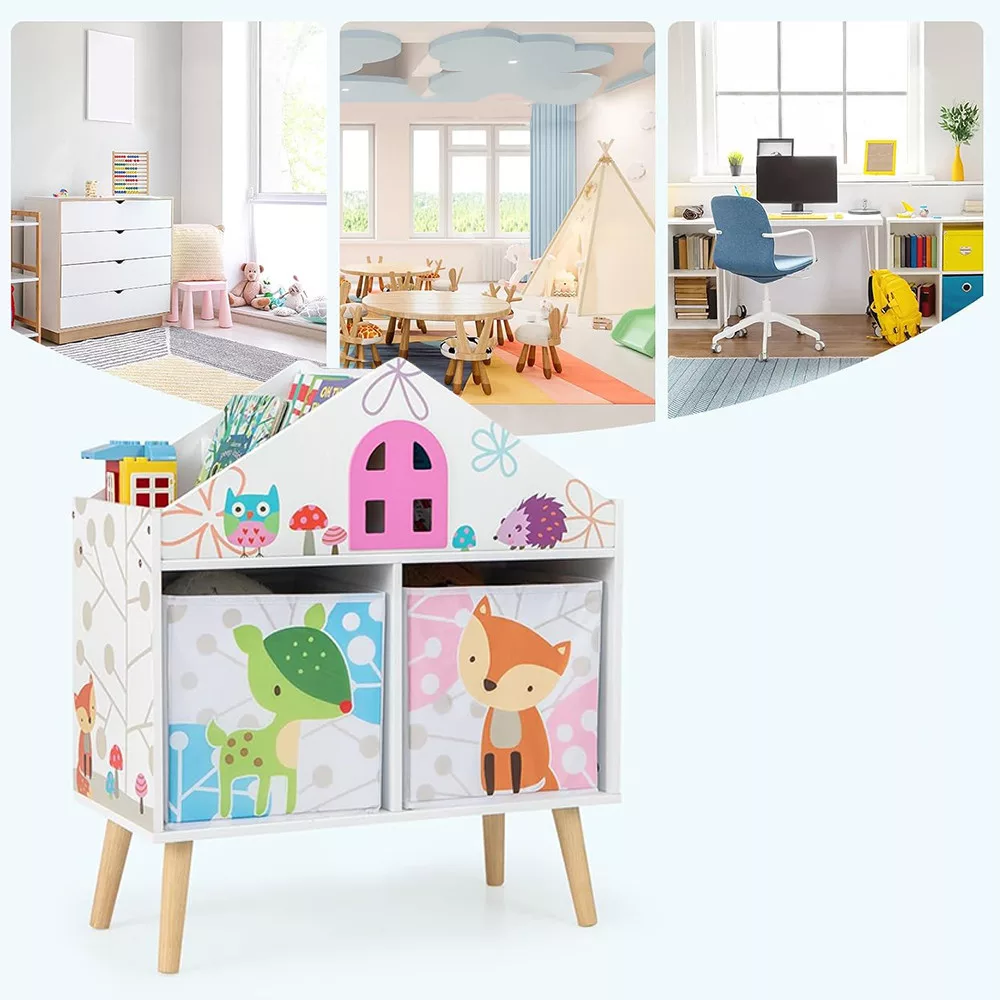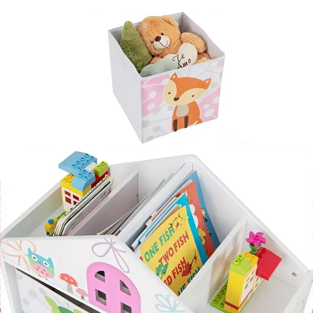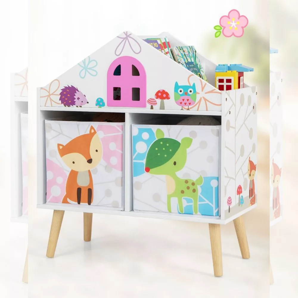 Mobilierul dispune de patru compartimente superioare, două rafturi deschise inferioare și două cutii de depozitare detașabile, oferind un loc dedicat pentru fiecare jucărie, carte sau material de artă. Cutiile separate pot fi folosite chiar și în alte camere, ajutând copiii să își organizeze lucrurile.