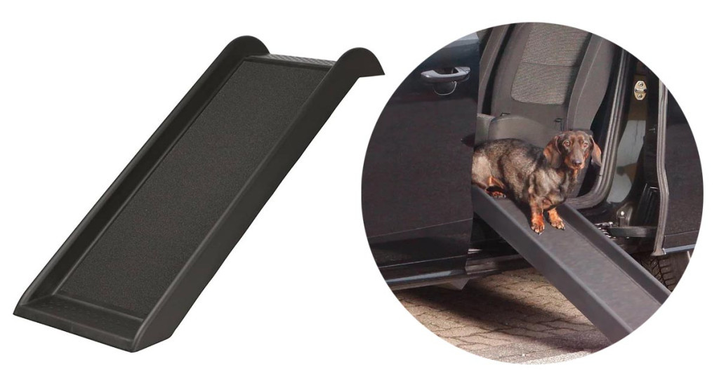 Rampa dispune de un strat antiderapant care asigură stabilitate în utilizare, prevenind alunecarea animalului pe parcursul urcării sau coborârii.
