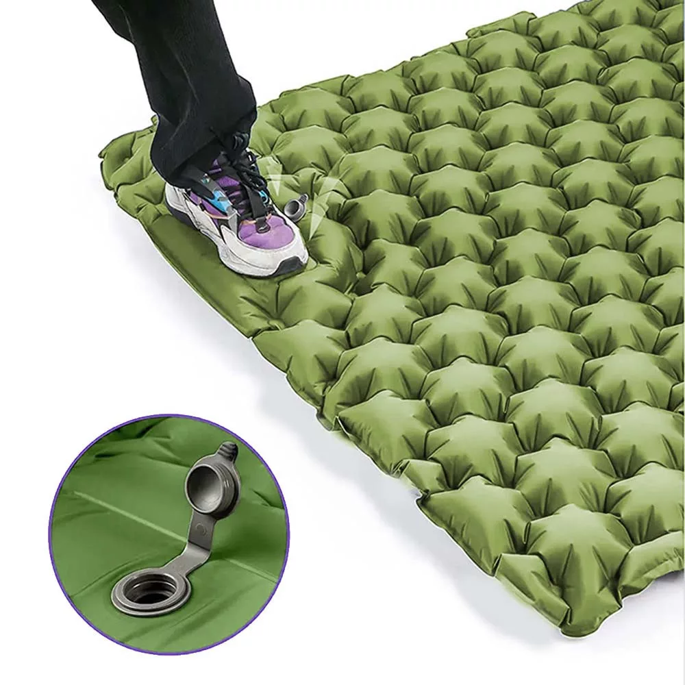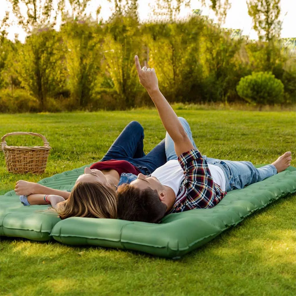 Patul mobil este conceput pentru camping și drumeții, astfel încât să te poți odihni confortabil oriunde. Odată umflat, are o grosime de 9 cm, izolându-te de solul rece și denivelat, pentru un somn liniștit în aer liber.