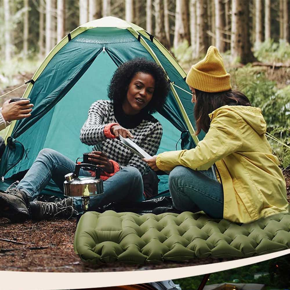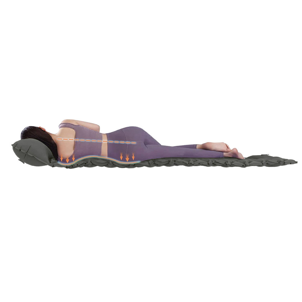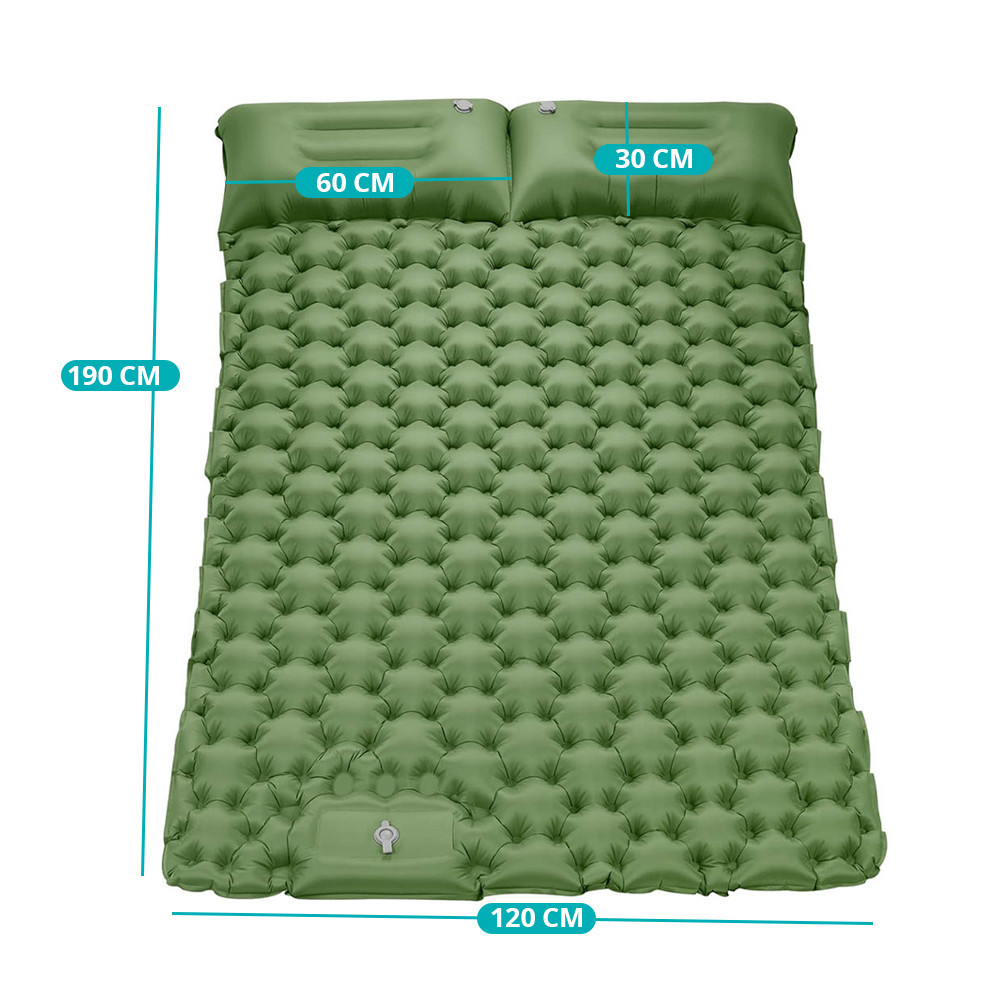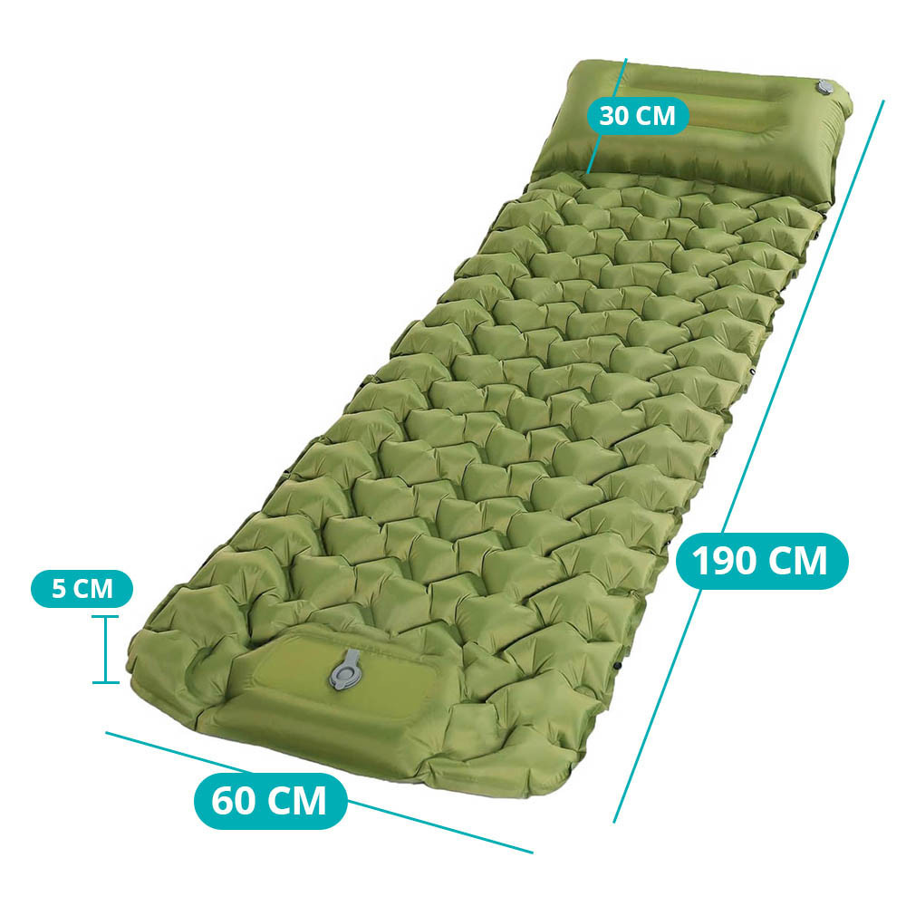 Patul mobil este conceput pentru camping și drumeții, astfel încât să te poți odihni confortabil oriunde. Odată umflat, are o grosime de 9 cm, izolându-te de solul rece și denivelat, pentru un somn liniștit în aer liber.