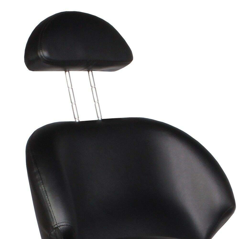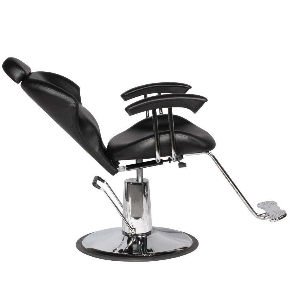 Tapițeria din piele ecologică neagră oferă un aspect stilat și este ușor de întreținut. Se integrează perfect în saloanele moderne de frizerie sau coafură.