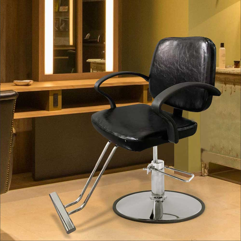 Scaunul nostru negru este excelent atat pentru saloane de coafura cat si pentru frizerii. Materialul sau din piele sintetica este foarte usor si rapid de curatat, iar inaltimea sa este reglabila cu picior. Confortul clientilor este asigurat de catre suportul pentru picioare, capacitatea scaunului este de 100 kilograme.